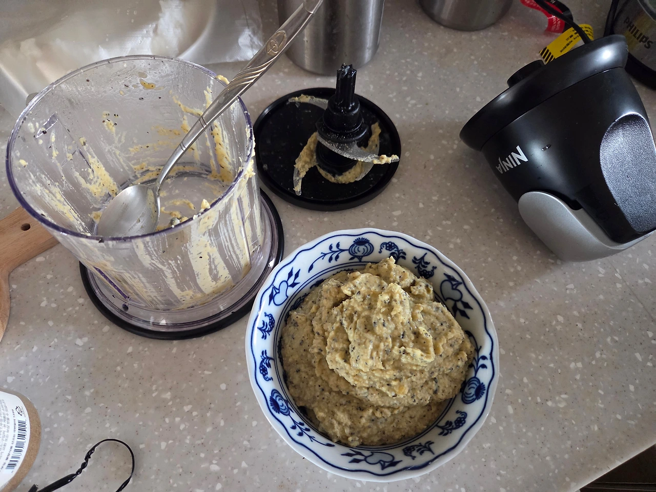 닌자로 처음 후무스 만듦. 만들기가 너무 간단. 5만 원 주고 기계 사는 이유가 충분함.