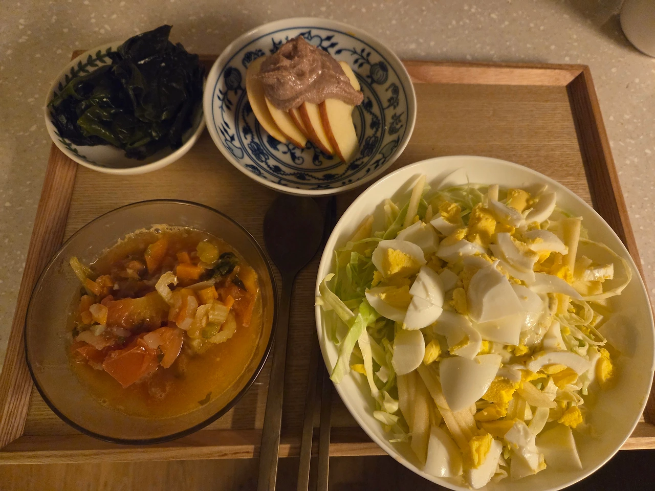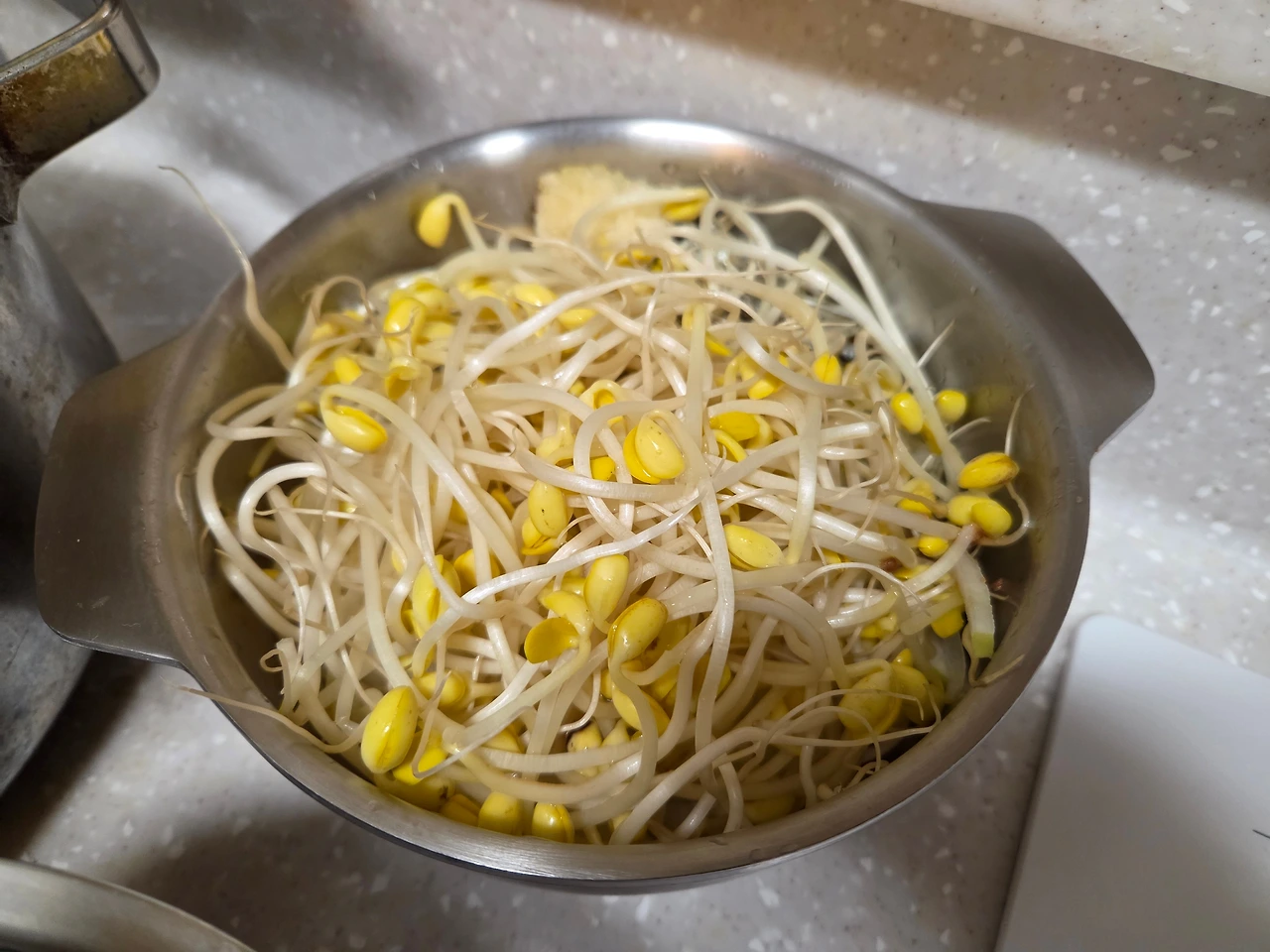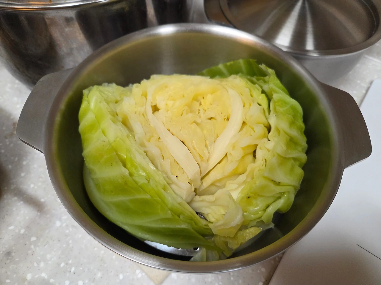 내일 아침 먹을 것을 준비해 두었다. 무채콩나물된장국. 양배추는 오늘 장 볼 때 한 개를 사 와 냉장고에 있던 걸 사용하려고 쌈용으로 쪄놓았다. 밥에 싸 먹는 양배추쌈은 언제나 맛있다.