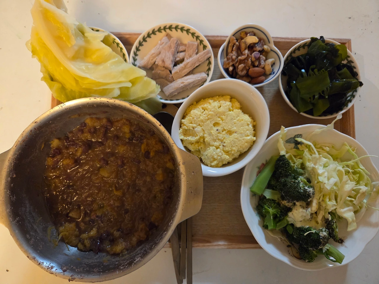 양배추를 미리 쪄놓길 잘했다. 고기에 싸 먹기 편하고 좋았다.