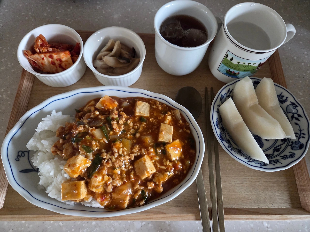 중딩 큰아이 점심 마파두부. 자연광에서 찍은 사진이 좋다.