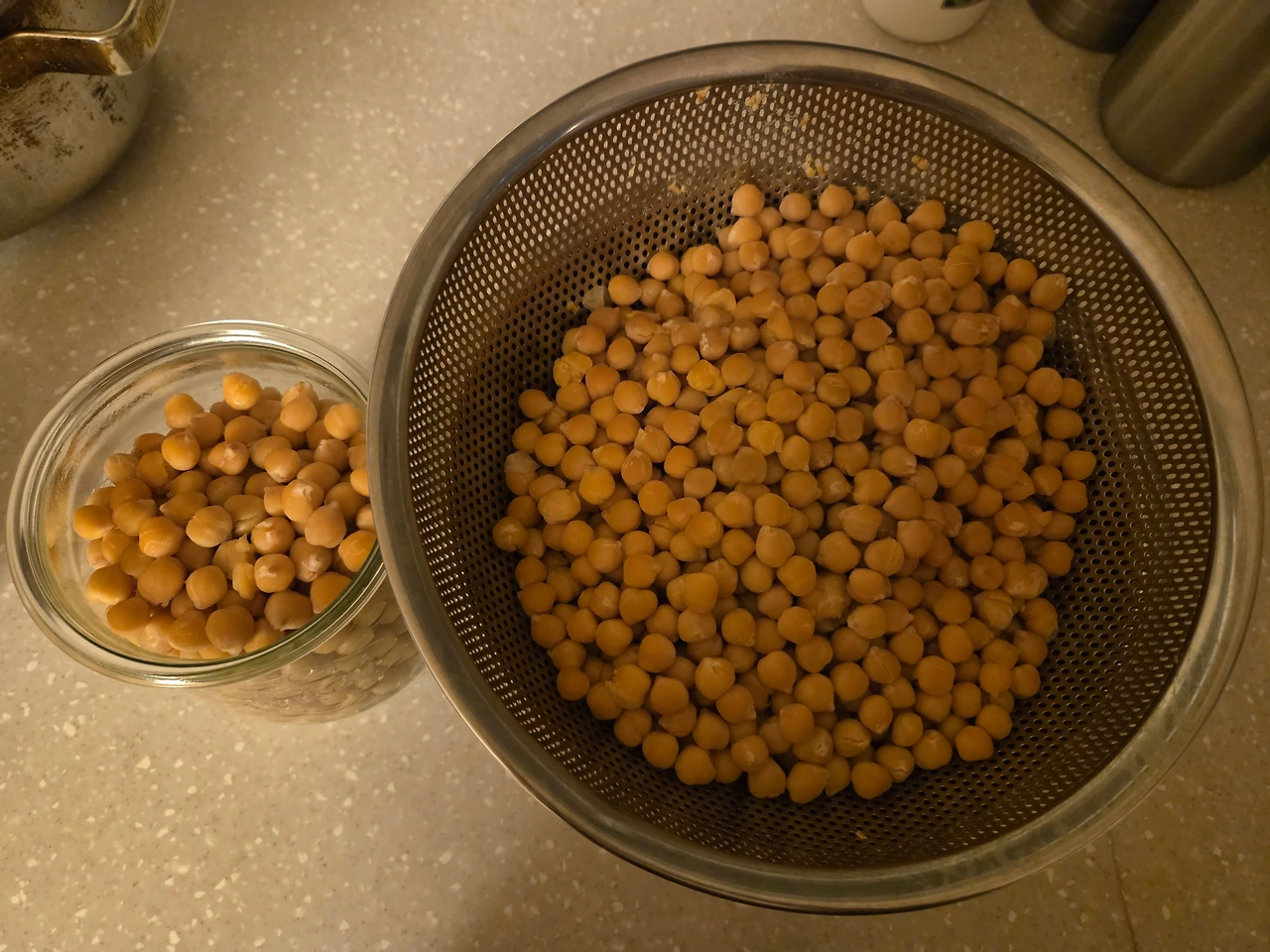 내일은 후무스를 해 먹으려고 새벽에 후무스를 불리고 오후에 자고 일어나 압력솥으로 삶았다. 그냥 병아리콩만 주섬주섬 한알씩 집어먹거나 오븐에 구워 먹을 때는 식감이 살아있는 게 좋아 냄비에 삶는다. 갈아서 만드는 후무스는 부드러운 게 좋아 엄지와 검지 손으로 살짝만 눌러도 으깨어지는 압력솥에 삶았다. 추돌아가는 소리를 듣고 전기레인지 세기를 1로 낮춰 10분간 더 삶았다. 지난번에 이렇게 삶았을 때 능그러 질만큼 손으로도 쉽게 으깨졌었는데 이번에는 으깨어지면서도 단단함이 조금 남아있었다. 그래도 쵸퍼에 물과 레몬즙을 넣고 갈면 부드러운 후무스가 되는 건 같을 거니까 괜찮다.