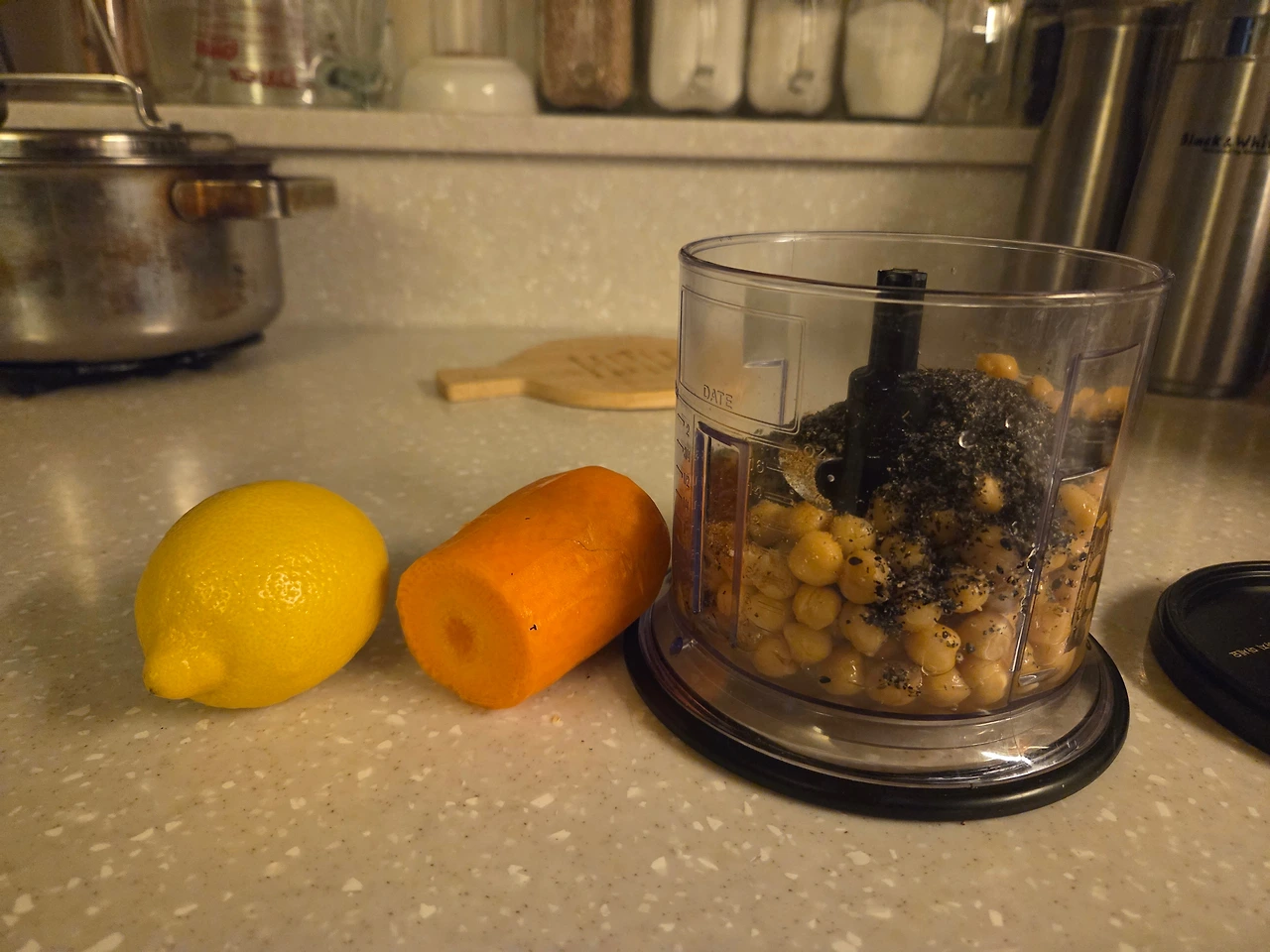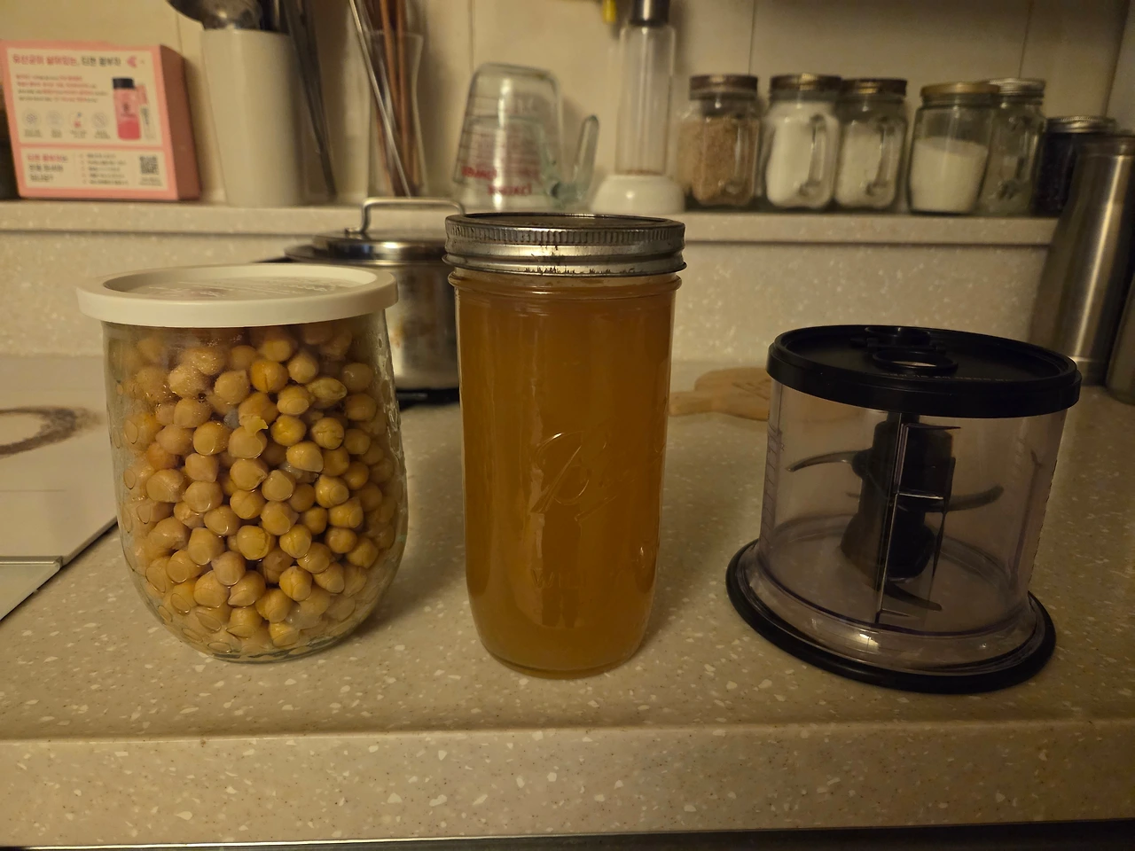 위의 '오늘도 후무스를...'를 쓰고 머릿속으로 '먹고 싶었다'까지 생각하고 일어나 부엌에 나갔다. 내일 아침에 먹을 후무스를 냉장고에서 꺼내 놓으려고 한 거였다. 삶은 병아리콩에 따뜻한 병아리콩 삶은 물을 섞어 만든 따뜻한 후무스가 맛있었다. 따뜻하진 않더라도 냉기는 빼고 싶어서 재료들을 실온에 꺼내두고 왔다. 바로 갈아서 만들 수 있게 병아리콩, 병아리콩 삶은 물(윗면이 젤리같이 굳어 있었다), 큐민가루, 소금, 간 검은깨를 쵸퍼에 넣고, 후무스를 떠먹을 당근을 꺼내놓고, 즙을 짜 넣을 레몬을 꺼내 놓았다. 싱크대 아래장에서 올리브오일만 꺼내 한 바퀴 둘러 주면 된다.