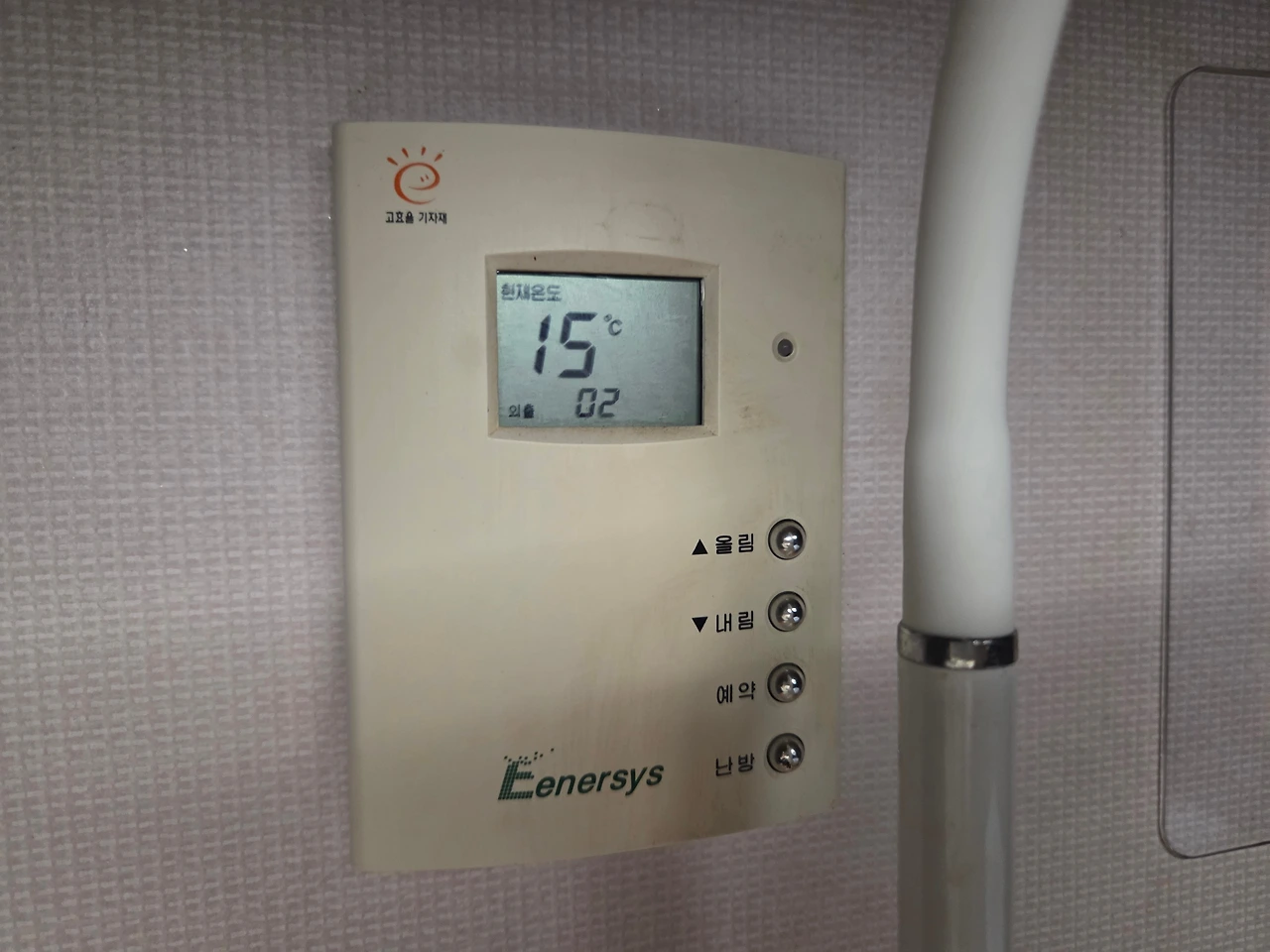 그중 오늘이 가장 추운 날. 어제까지 며칠은 16도로 올겨울 가장 추운 날(집안 온도 기준)이었다. 추워서 카디건을 2개 입고 있었다. 방 보일러 온도를 보고 처음 본 15도에 놀라 사진을 찍었다. 가장 추운 날을 오늘의 기록으로 남기려고.