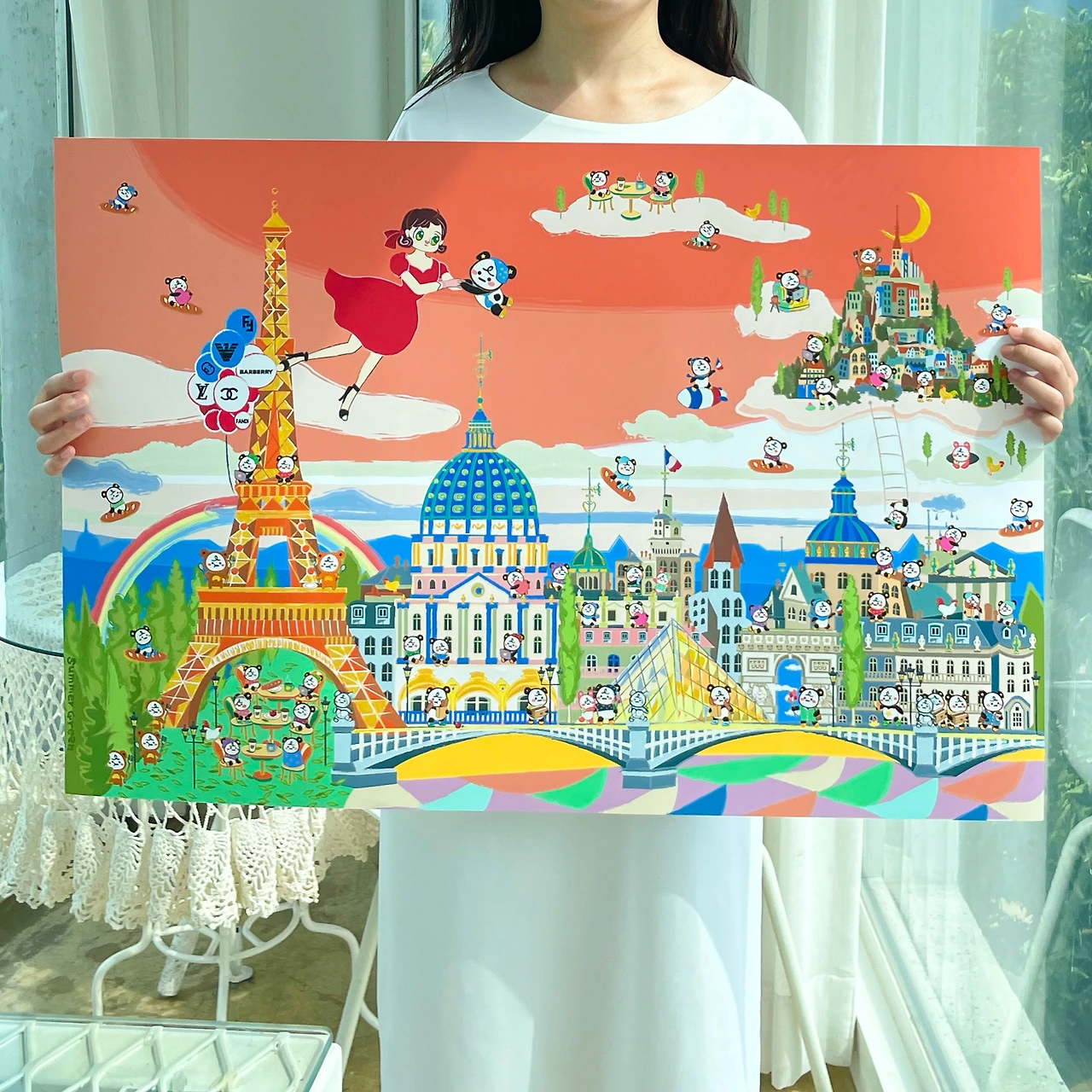 [ 라라랜드로 갈 수 있다면 ] 여행 그림 시리즈로 가고 싶은 라라 랜드를 그린다. 그림에는 여행자 메리와 판다곰 팽다의 스토리가 담겨있다.