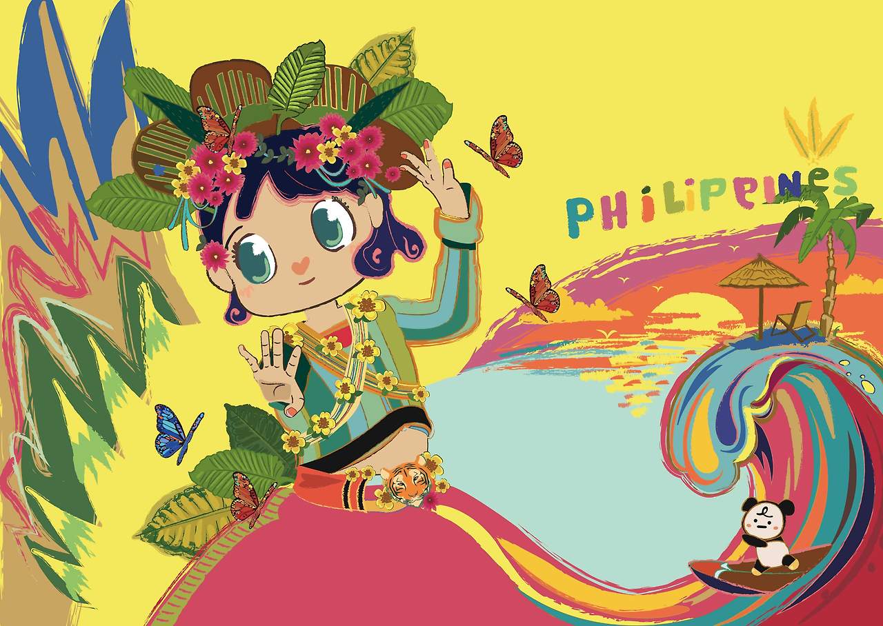 주말에 선생님과 스케이트를 타러 번햄 파크를 가게 되었다. 울창한 나무와 넓은 공원 특유의 여유로움이 있었다. 바기오의 심장이라고도 불리는 이 공원이 그림 속 꽃 축제인 파낙벵가 축제가 열리는 곳이다. 파낙벵가(panakbanga)는 꽃이 피는 계절이라는 뜻을 가지고 있다. 그림은 오프닝 퍼레이드에서 민속춤을 추는 장면과 바다를 함께 그려 필리핀의 전체적인 인상을 표현했다.