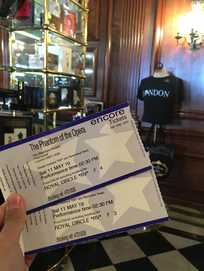 흐리던 날씨가 맑아지고 버스를 타고 달리는 동안 창밖 풍경을 바라보았다. 런던에 오면 꼭 이층에 타봐야지라고 생각했는데 생각보다 쌀쌀한 날씨에 올라갈 엄두를 못 냈다. 오늘 뮤지컬을 보러 갈 계획은 없었는데 운이 좋게도 언니가 25파운드, 3만 원대 티켓팅에 성공해 바로 보러 가게 되었다. 티켓부스의 직원에게 예약을 확인하고 표를 받았다. 기둥 근처의 좌석이라 저렴했지만 오페라의 유령을 실제로 볼 생각에 개의치 않았다.