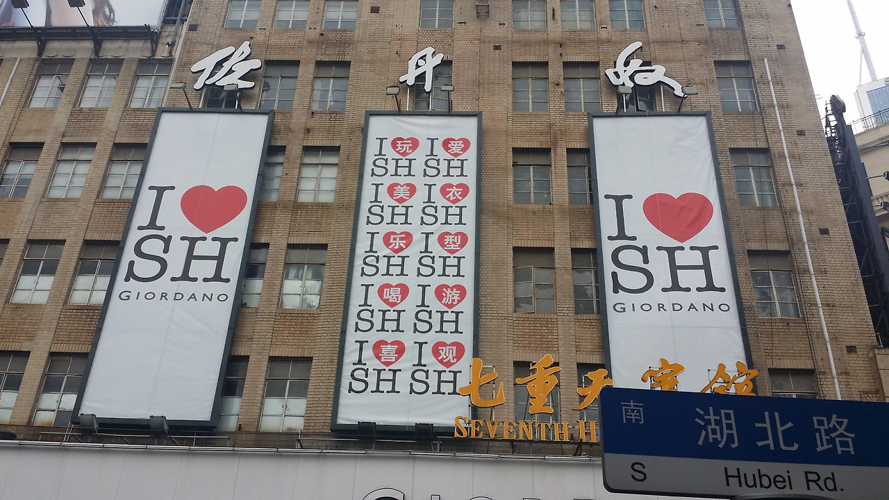 (좌)2011년 지오다오에서 구입했던 아이러브 상하이 티셔츠. (우) 2015년인가 뉴욕에서 오는 길에 스톱오버했을때 찍었던 지오다오의 외벽 중 일부. 지금은 없다.
