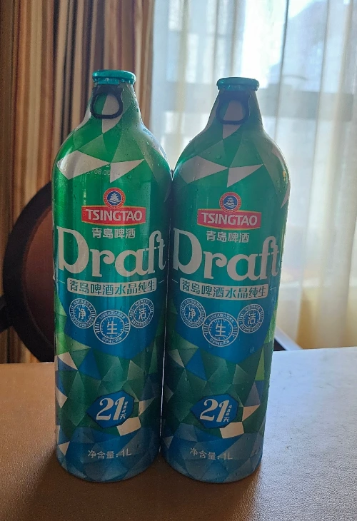 그러다가 우연히 지하철 광고를 하는 칭따오 120주년을 기념한 특별한 맥주를 발견했다. "저 맥주를 너무 마시고 싶다"는 간절한 마음으로 상하이 시내에 위치한 많은 편의점과 마트를 다녔는데, 한국에서 흔히 마시는 초록색 칭따오 맥주밖에 없었다. 그러다 아주 반갑게도 남편이 푸동 IFC몰 지하에 위치한 마트에서 아주 사치스러운 칭따오 기념 맥주를 발견해냈다. 1L 짜리 맥주로 60元 정도 했던 것 같다. 아마 까르푸나 테스코 등의 대형 마트에 팔 확률이 높았을 테지만, 한국과 마찬가지로 관광지에서 현지 대형 마트를 찾기는 쉽지 않았기에, 푸동까지 가서 찾은 보람이 있었다. 그날 맥주만 5만원 어치를 샀고 무게가 상당했기 때문에 바로 호텔로 돌아가야만 했다. 호텔로 돌아가자마자 화려한 초록색 그라데이션이 가득한 칭따오 맥주를 열고 연거푸 들이켰다. 기념 맥주라고 더 특별한 맛은 아니었지만 예쁜 초록색 병에 취하고, 여기서만 맛볼 수 있는 맥주를 쟁취했다는 보람에 취했던 날이었다.