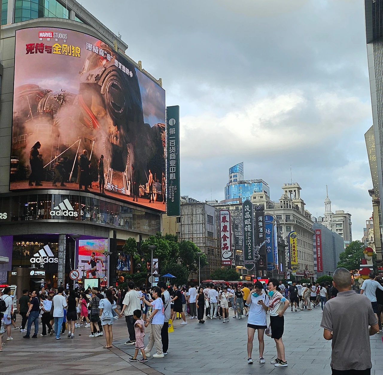 난징시루는 상하이의 현대적이고 세련된 모습을 대표하는 거리다. 들으면 모두가 알만한 명품 가게가 모두 있다. 이곳에 서면 끝없이 이어지는 고급 백화점들과 명품 상점들이 한눈에 들어오는데, 이는 마치 파리의 샹젤리제 거리를 걷는 듯한 느낌을 준다. 깨끗하고 잘 정돈된 거리, 유리창 너머로 보이는 화려한 디스플레이들. 사람들은 마치 패션쇼를 걷는 모델처럼 여유롭게 걸음을 옮기고, 커피 한 잔을 손에 든 채 천천히 쇼핑을 즐긴다. 난징시루를 걸으면 자본과 소비가 교차하는 현대 중국의 에너지를 생생하게 느낄 수 있다.