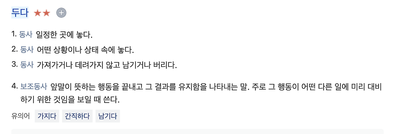 두다의 사전적 의미는 이러하다.
