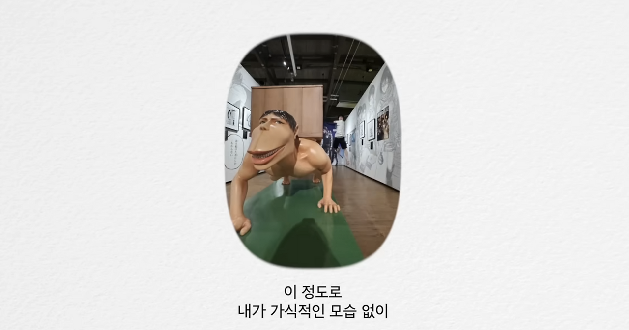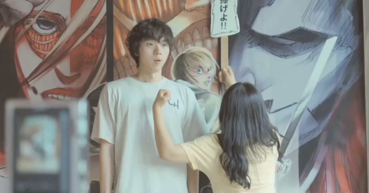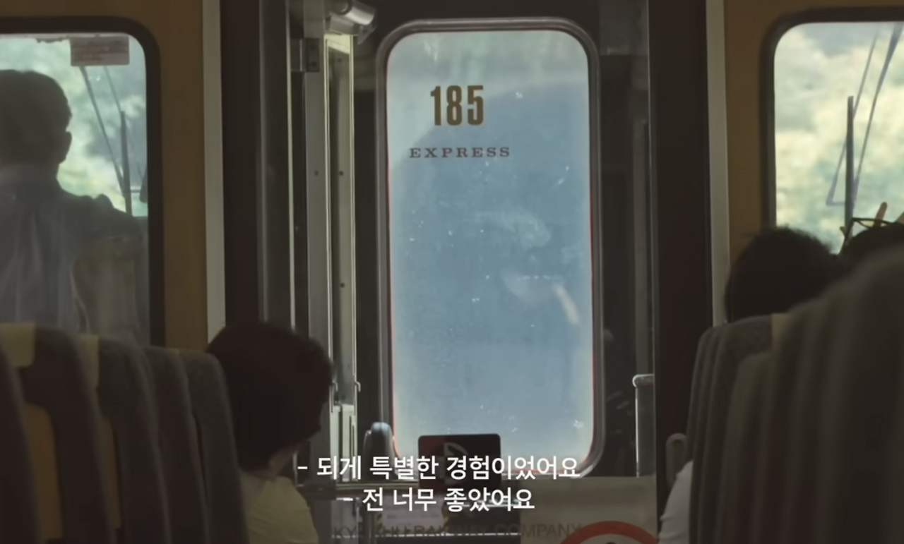 둘째 날에는 진격의 거인을 좋아하는 두 사람이기에 진격의 거인 박물관으로 여행지를 택했다. 기차 안에서 도시락을 나눠먹으면서 나누는 대화도 좋았지만 기차 복도를 보여주는 장면이 특히 가장 좋았다. 왼편에 오른쪽 어깨만 보이는 저분이 현구 씨인데... 진짜 소개팅하는 사람들의 대화를 바로 옆에서 듣는 것 같은 착각을 이런 연출 덕분에 느끼게 되는 것 같다.