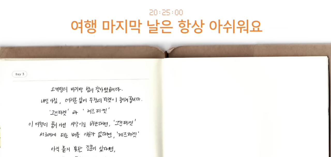 첫째 날에는 상대방의 나이와 직업, 거주지가 공개가 불가능하기에, 첫날은 정말 '이름'과 '플래너에 있는 정보', 그리고 대화를 통해 새롭게 알음알음 알게 되는 정보들로만 서로를 유추할 수 있다.