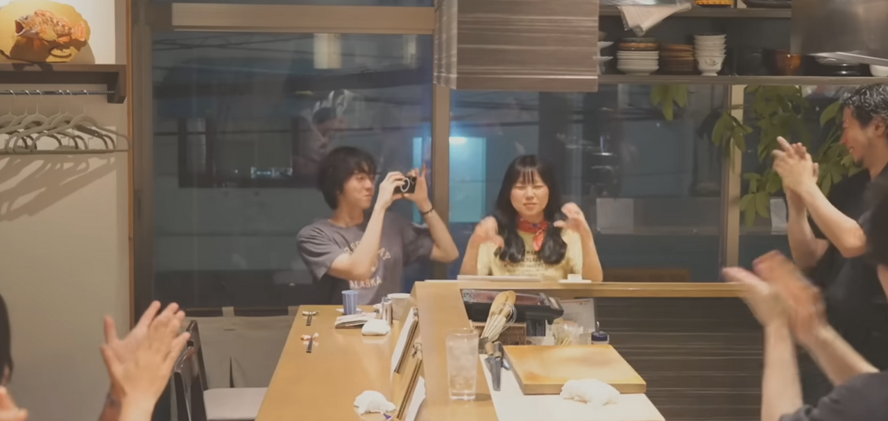 참고로 아래에 있는 장면, 가게에 있는 모든 사람이 같이 미소의 얼마 안 지난 생일을 다 같이 챙겨주는 이색적인 장면은 영화보다 더 영화 같은 장면이었다고 생각한다 개인적으로.