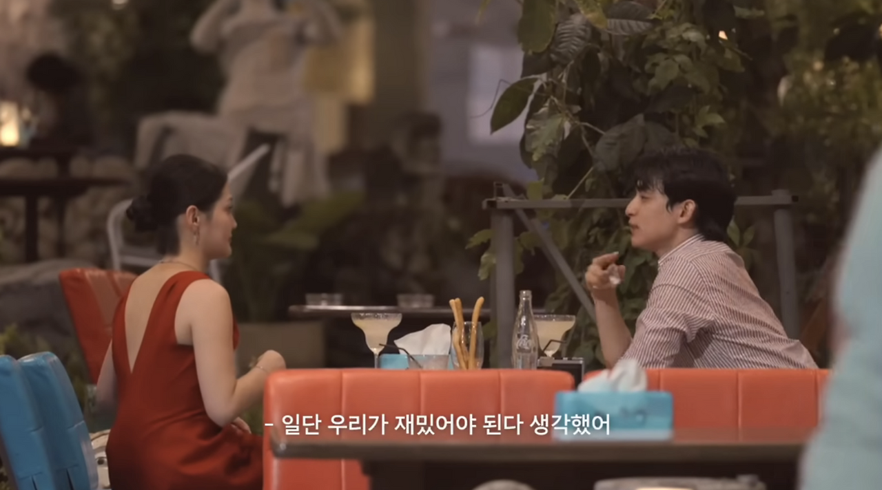 1화는 배우 손석구와 데이트 콘텐츠로 유명한 유튜버 '짐미조'(미소)와 일반인 남성 현구의 소개팅이었다. 남성분이 여성분을 알고 있는 상태여서 더 호기심 있게 다가갔던 거 같아 보였는데, 여성분도 마침(?) 너무 환하게 잘 웃고 웃음이 이쁜 사람이라 둘의 모습을 보면 내가 다 기분 좋았다 ㅠ.ㅠ.