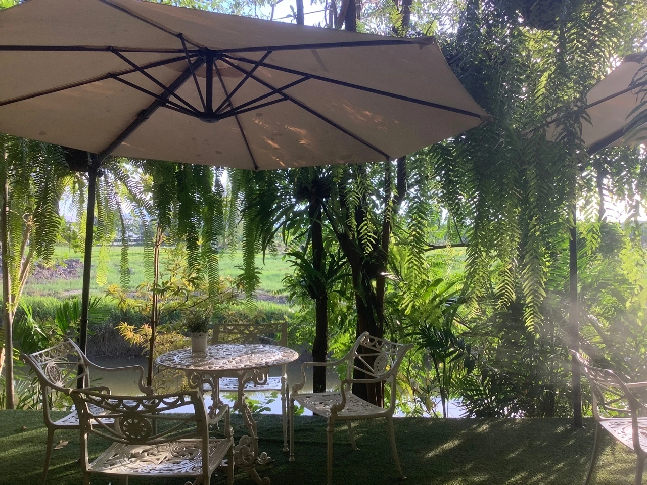 항상 내가 걸어 다닐 때마다 눈인사를 주고받곤 했던 오토바이 아저씨가 한 분 계신다. 내 태국어가 형편없기 때문에 제대로 대화를 해 본 적은 없지만, 항상 미소 띤 얼굴로 내게 인사를 건네주셨기에 이 날은 수많은 택시 아저씨들 중에서 이 아저씨의 오토바이 택시를 이용하기로 마음먹었다. 내 짧은 태국어, 파파고 번역기, 바디랭귀지를 사용하여 아저씨에게 '여기에 가려고 하는데, 나중에 5시쯤 전화를 할 테니 그때 데리러 와주실 수 있나요?'라는 의사를 전달하였고, 아저씨의 번호를 내 휴대폰에 저장했다. 오토바이 뒷좌석에 내 엉덩이를 붙이고, 두 손은 내 바로 뒤에 손잡이를 꽉 잡았다. 바람을 가르며 시내를 벗어나 걸어 다니는 사람이 없는 시내 밖으로 점점 멀어졌다. 사람 대신 내 눈에 보이는 건 한가로이 풀을 뜯는 소들, 닭들, 그리고 들개들!
