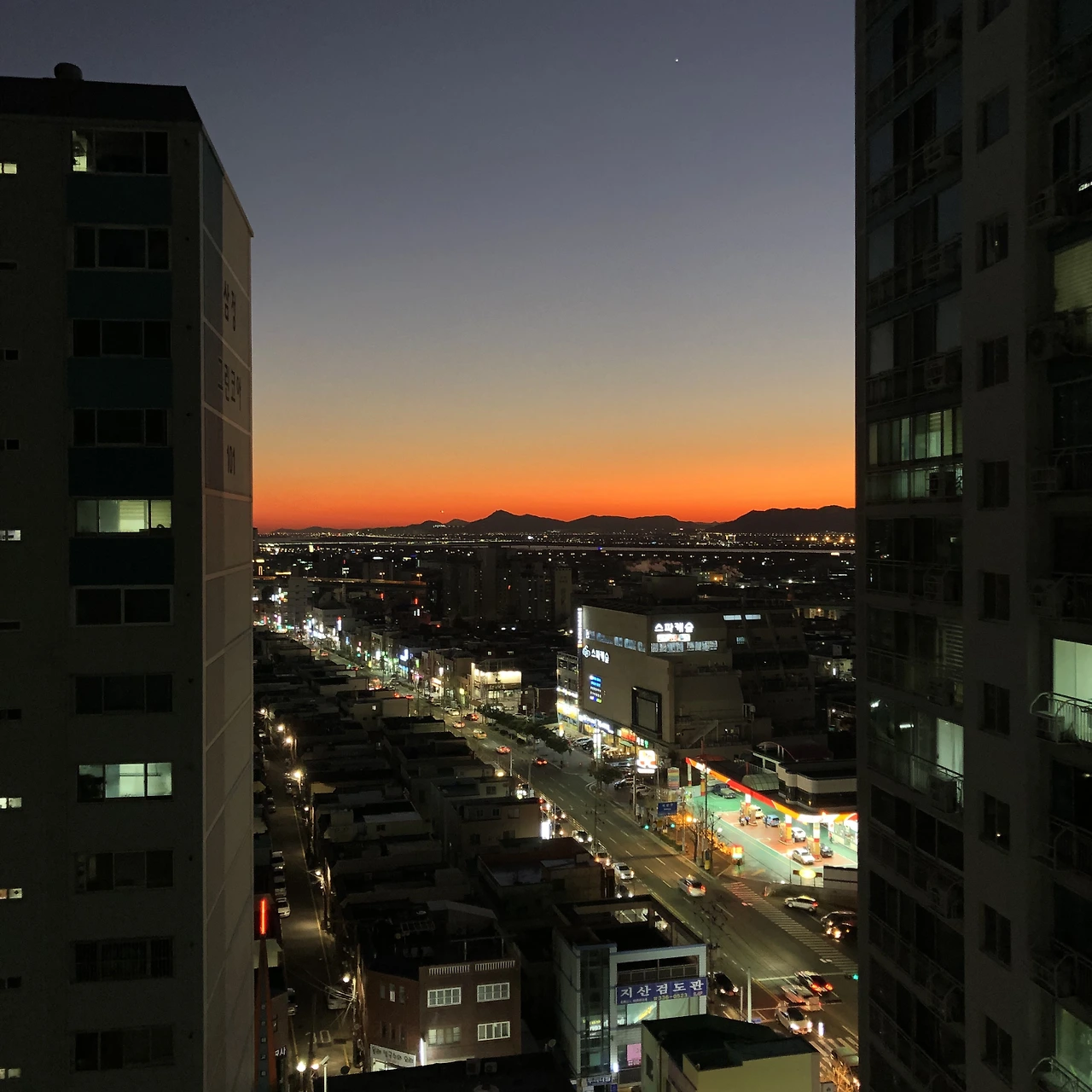 아내의 복직으로, 당분간 아들을 엄마가 봐주시기로 해서 부모님 집 근처에 집을 구하기로 마음먹었다. 그전까지는 결혼 후부터 쭉 관사 아파트에서 살고 있었다. 집을 구하러 다니며, 첫 번째로 보러 간 집에서 우리 부부는 베란다 바깥으로 보이는 풍경에 매료되고 말았다. 완전히 탁 트인 전망은 아니었지만, 아파트 사이로 보이던 풍경이 그 당시에는 너무나도 멋져 보였다.