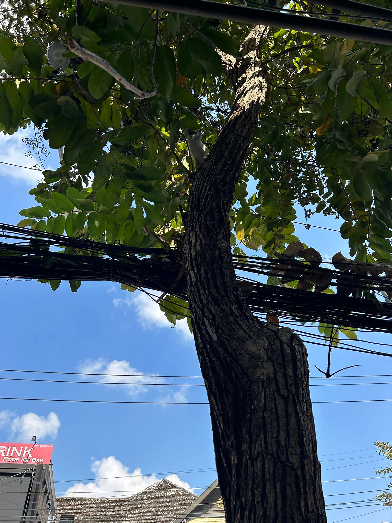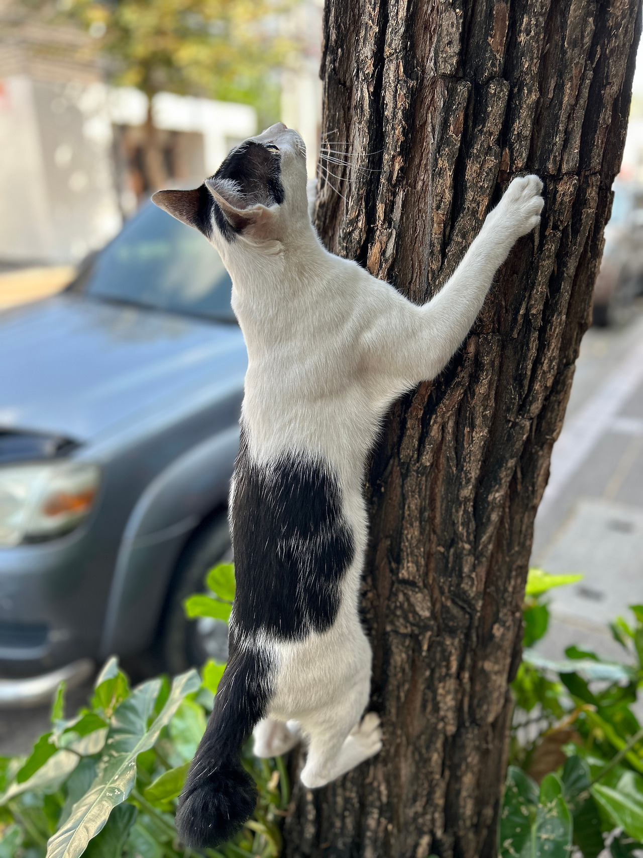 날렵한 몸집의 얼룩이고양이는 그리곤 보란 듯이 내 앞에서 나무를 타기 시작했다. 우둘투둘한 기둥에 발톱을 척척 찍어가며 손쉽게 나무 중간까지 올라간 고양이가 매복이라도 하듯 가만히 멈춰서 한참 저 위를 쳐다보기만 하기에 ‘더는 못 올라가나보다’ 생각하고 있던 찰나, 고양이는 눈 깜짝 하는 사이에 우다다다 달려서 내 키보다 한참 높은 나무의 등성이에 척- 하고 안착했다. 방금 전 매미처럼 한참동안 나무 중간에 붙어서 저 위를 살폈던 건, 오르지 못할 것 같아서 머뭇거린 게 아니라 올라가 앉을 자리를 미리 유심히 봐뒀던 건가 보다.