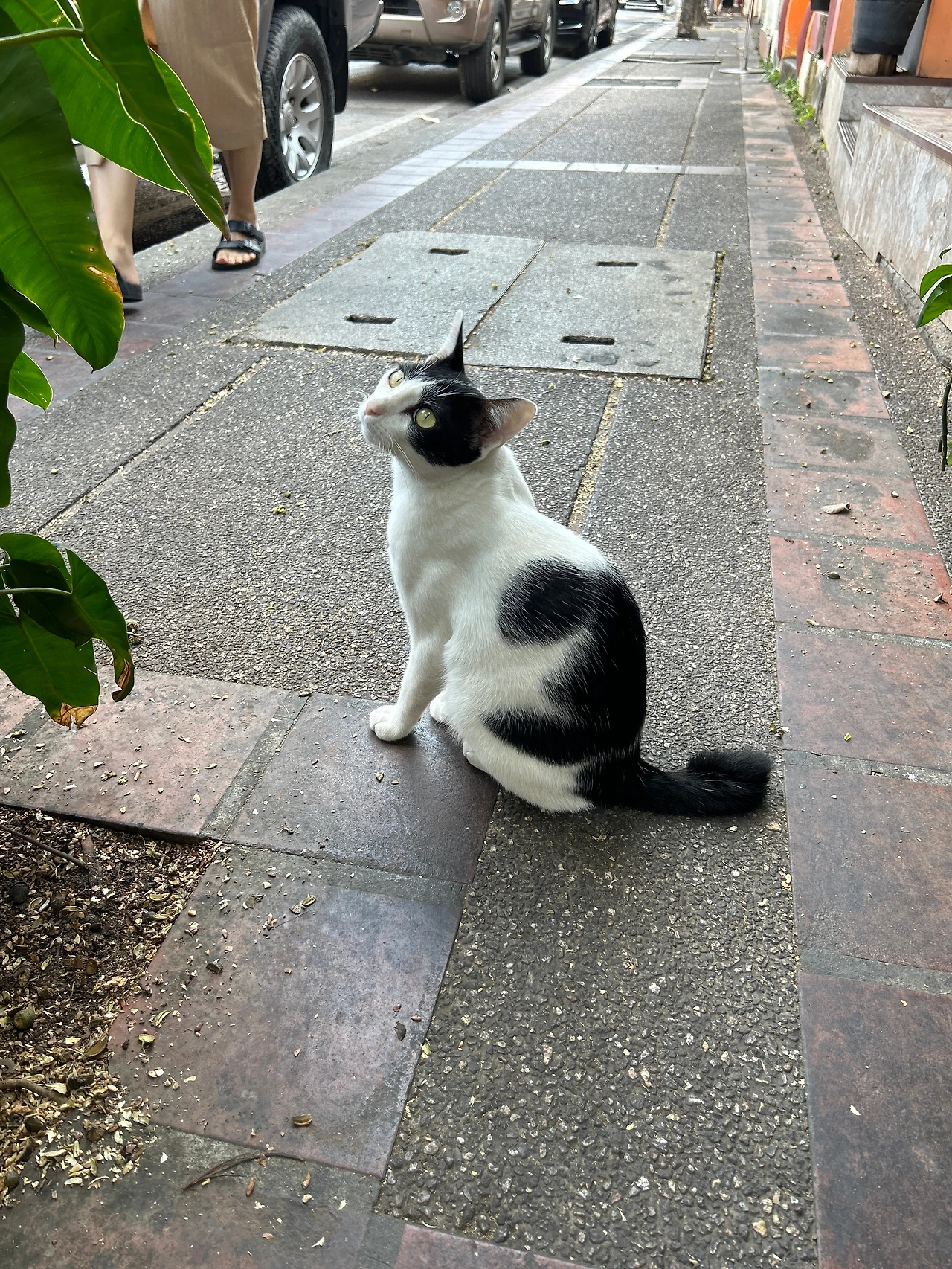 딱 목줄이 허용하는 곳까지만 산책을 하는 것이 익숙한 듯 고양이는 차양 밑에 늘어진 시원한 그늘 속을 어슬렁대다가, 인도 가장자리에 털썩 주저앉아 식빵을 굽기 시작했다. 연신 사람들이 곁을 스쳐 지나가도 전혀 개의치 않는 고양이. 사람들도 익숙하게 바닥에 늘어진 목줄을 성큼 건너뛰곤 계속 갈 길을 간다.