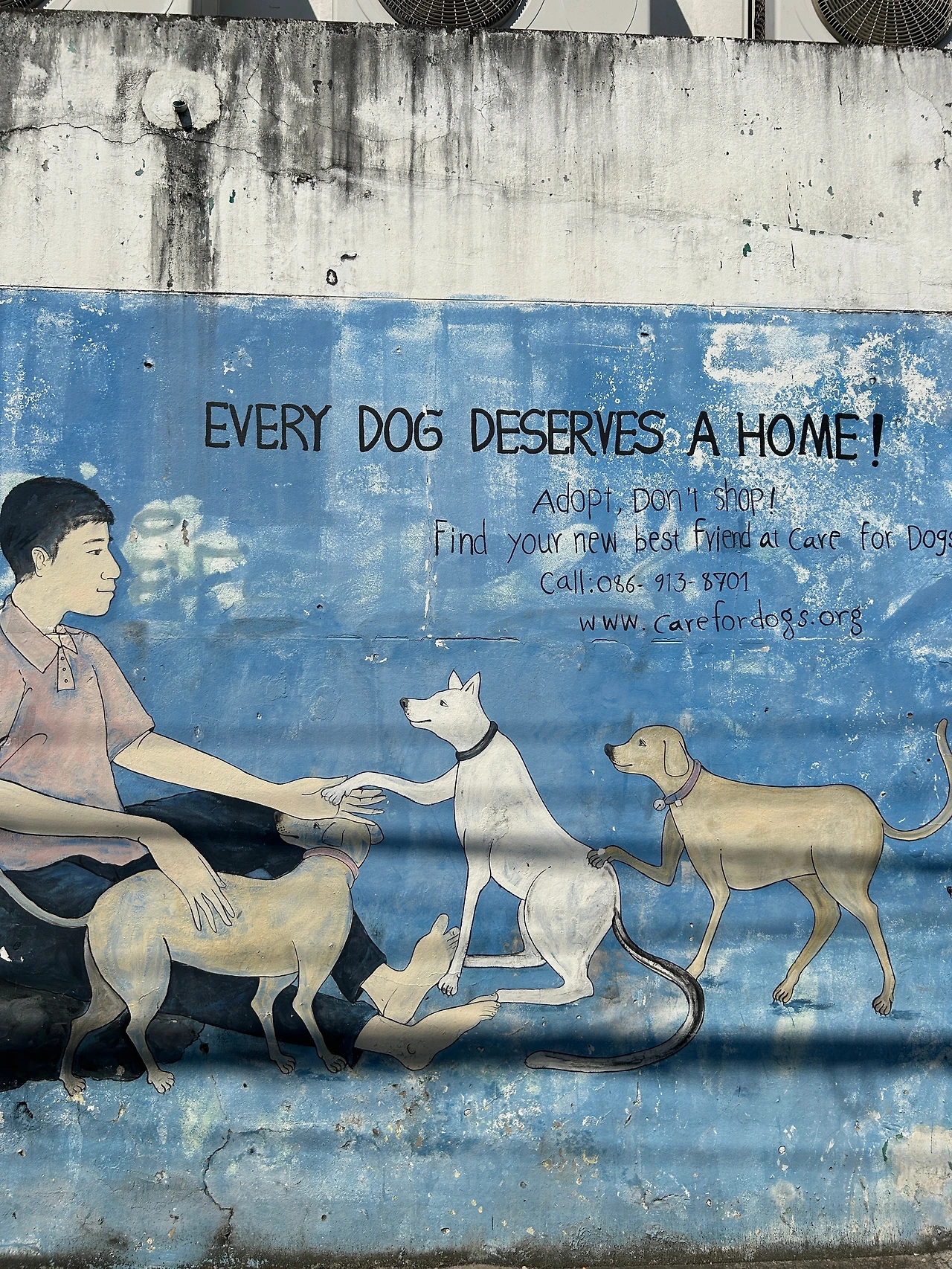 뒤이어 마주친 ‘강아지입양홍보’ 벽화가 반갑다. 동물을 대하는 태도는 흔히 그 사회가 약자를 대하는 태도를 대변한다고 한다. 혹자는 ‘개, 고양이보다 사람이 우선이지! 사람부터 챙겨!’라고 말하지만, 인간이 만든 아스팔트 위에 덜렁 털옷 하나 입고 태어난 작은 생명들이 모두 아늑한 집을 갖고 인간과 더불어 안전하게 살아갈 수 있다면, 그 세상에선 인간 역시도 서로에게 선뜻 따뜻한 마음을 베풀며, ‘함께’ 안락하게 살아갈 수 있지 않을까.