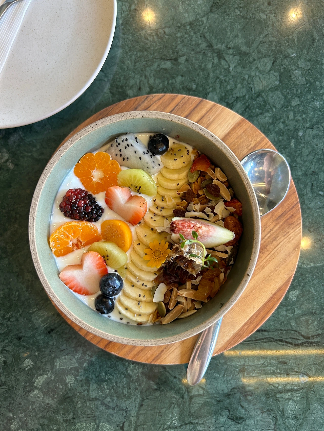 오늘도 어김없이 꽃 한 송이 살포시 올려준 요거트보울. 올드타운의 둘째 주를 서서히 떠나보낼 즈음이 되니, 조금 신기해진다. 치앙마이사람들이 내어주는 접시는, 언제나 과하지도 모자라지도 않는 것이. 그건 어쩌면, 만물이 서로 조화로운 자연과 더불어 살아가다 보면 저절로 얻어지는 감각인지도 모르겠다.