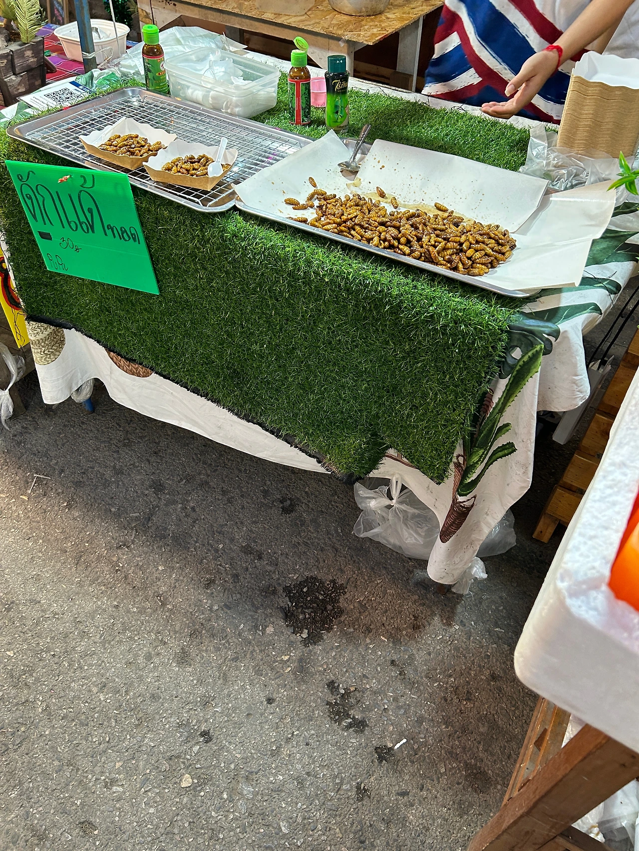 길 끝에서 만난 과일노점에서 먹음직스럽게 깎아 담은 파파야 한 컵을 샀다. ‘셔틀트럭’을 타러갈 시간이 다 되어 부지런히 걷던 중, 태국과 중국 식료품들이 뒤섞여있는 좌판 구석에서 들깨강정을 발견하곤 그것도 얼른 한 봉지 샀다. 약속장소에 도착하니 셔틀이 탈탈탈 달려왔다. 트럭은 쌩쌩 까만 밤을 달려 곧 베이스캠프에 도착했다.