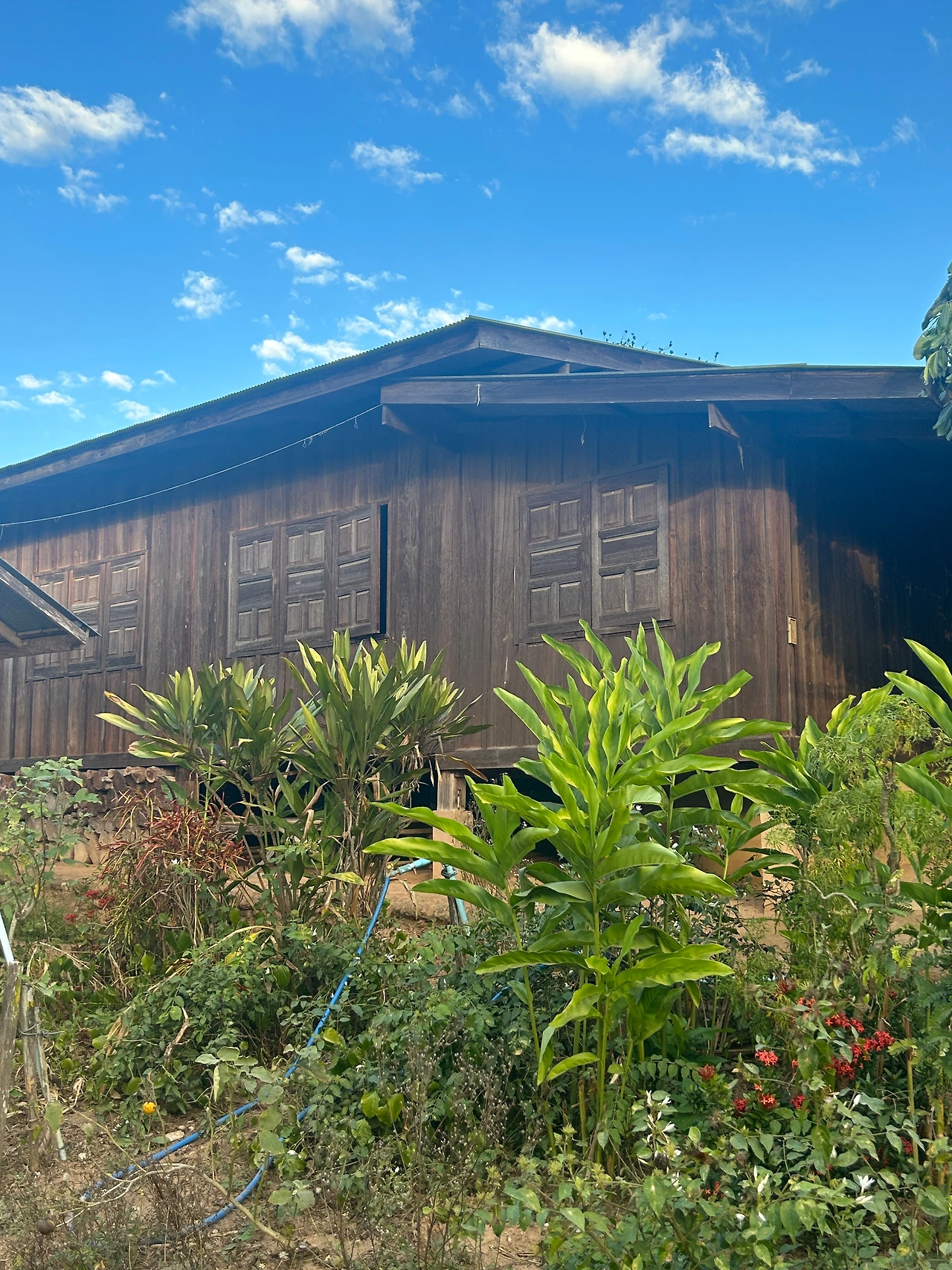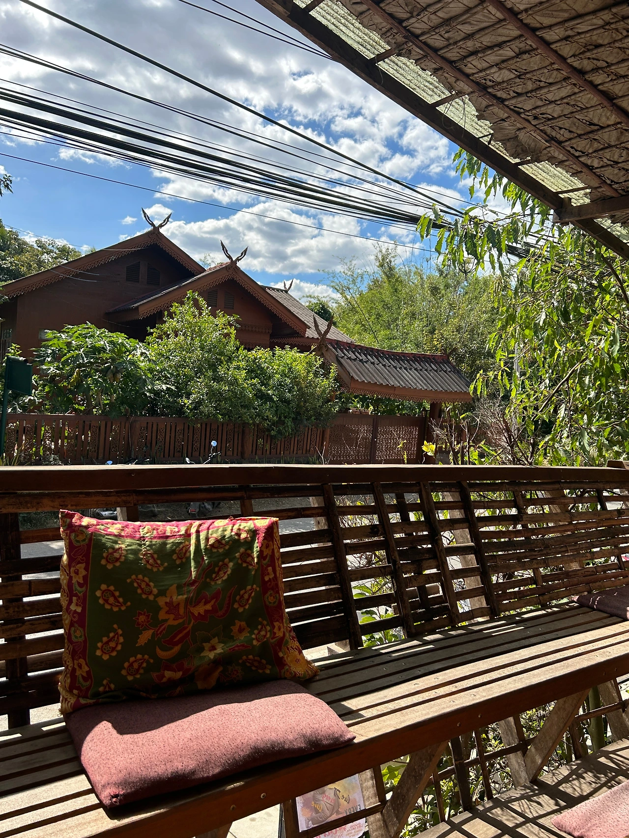 더운 나라에 오면, 한국과는 확연히 다른 건축양식을 구경하는 것이 재미. 무성한 나뭇가지들에 둘러싸인, 나무로 지은 집 속에, 나무로 만든 창문. 안과 밖이 자연스레 이어지는 모습들은 자연과 자연스레 어우러져 살아가는 빠이사람들의 생활을 있는 그대로 보여준다.