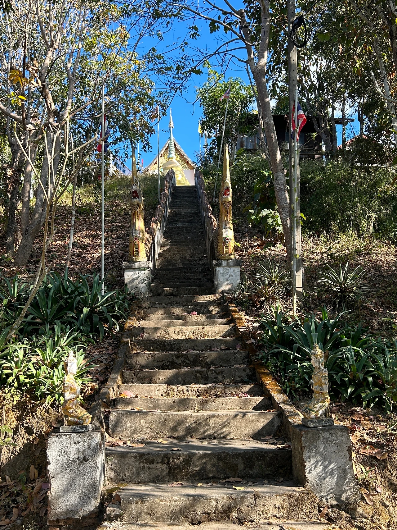 석 달의 여행이 끝나고 다시 일상으로 돌아가면 하루하루 끝없는 오르막길들이 기다리고 있는 것을 알기에, 나는 오늘 빠이의 평온한 하루 끝에 다시 부러 이 긴 계단을 하나하나 밟아 올라가나 보다. 지난번엔 지는 해 속에서 언덕 위의 부처와 마주했지만, 대낮의 파란 하늘 아래 언덕에 오르니, 모든 것이 선명해서 감회가 새롭다.