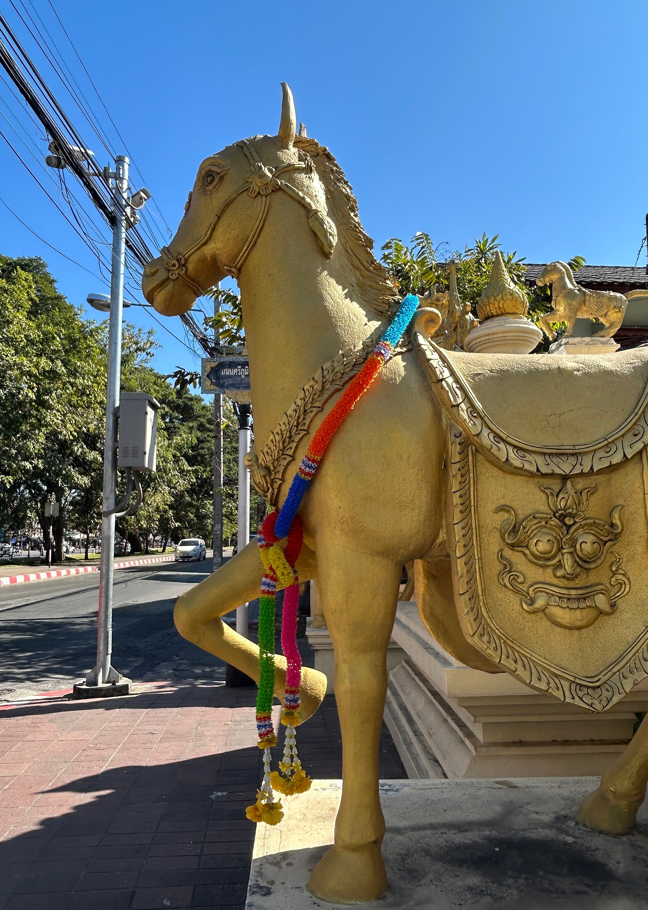 빠이의 언덕 위의 큰 부처님은 개의 형상을 한 신비로운 동물들의 호위를 받고 있었는데, 이 사원의 부처님은 황금말을 여럿 거느리고 있다. 한국에선 황금으로 만든 말이 보통 재물이나 금전에 행운을 불러오는 상징으로 쓰인다고 알고 있는데, 태국에선 혹시 다른 의미가 있는 걸까? 만약 한국과 같은 의미로 쓰인다면, 역시 도시의 사원은 내세의 안녕만큼이나 현세의 부귀를 비는 것이 그 주요한 역할인가 보다.