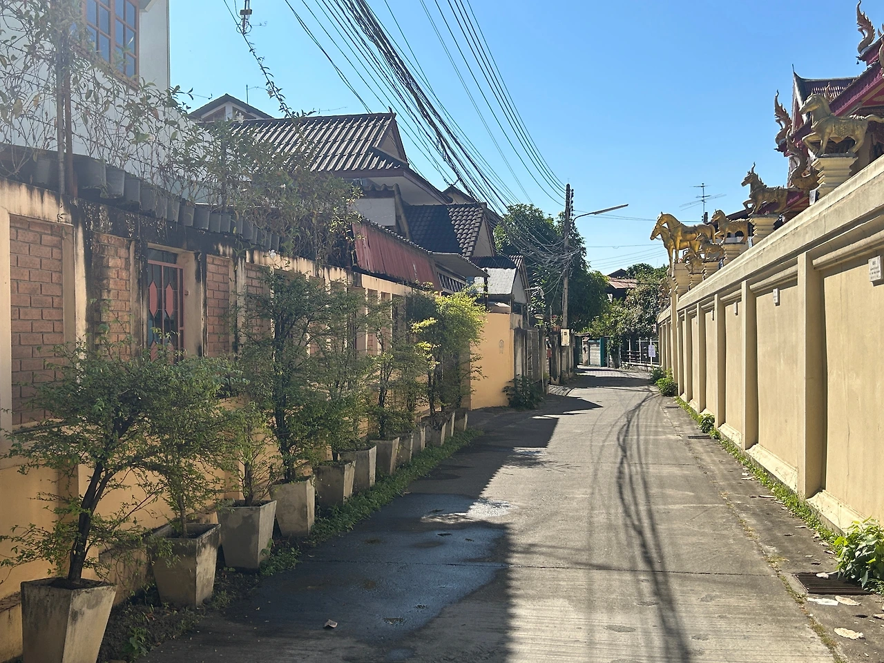 ‘늙어서 살고 싶은 곳’을 찾아 미리 살아보는 세 달간의 여행. 열흘의 빠이살이를 마치고 다시 돌아온 치앙마이. 네 번째 숙소를 기준으로 타닌시장은 북쪽에, 올드타운은 남쪽에 있다. 정사각형으로 구획된 올드타운은 해자로 둘러싸여있어서, 지금 묵고 있는 창푸악지역에서 올드타운에 가려면 무조건 물을 건너야 한다.