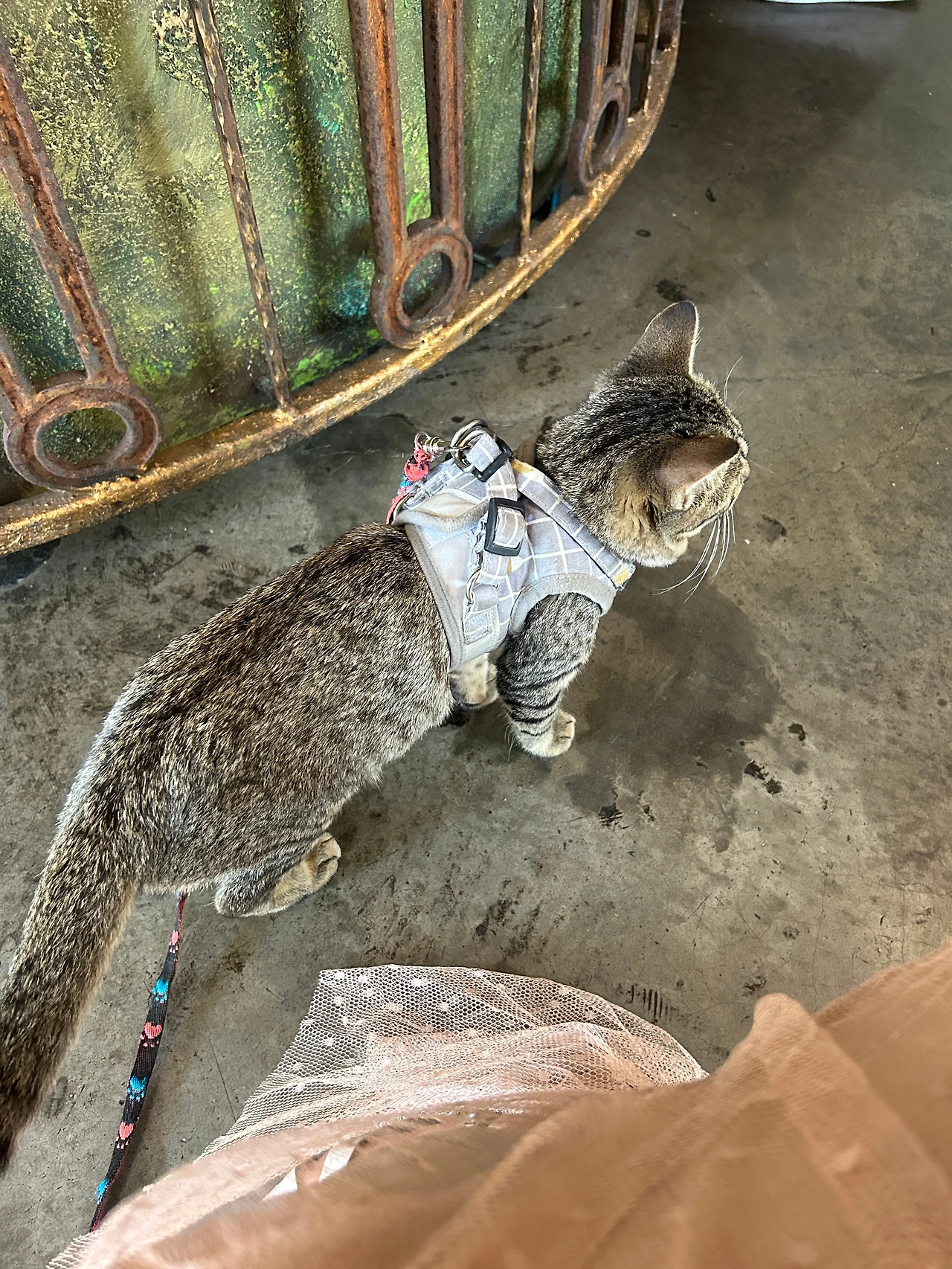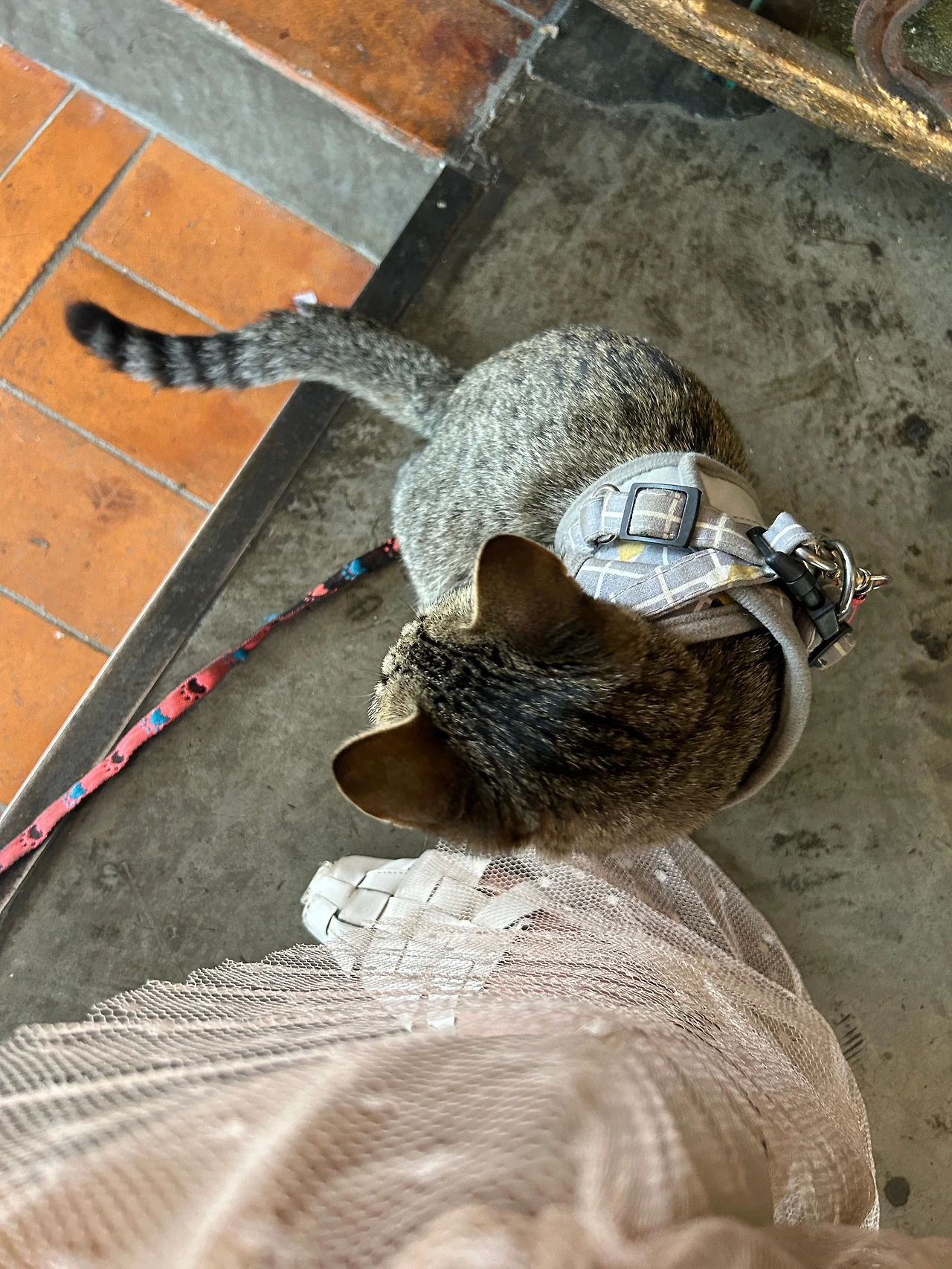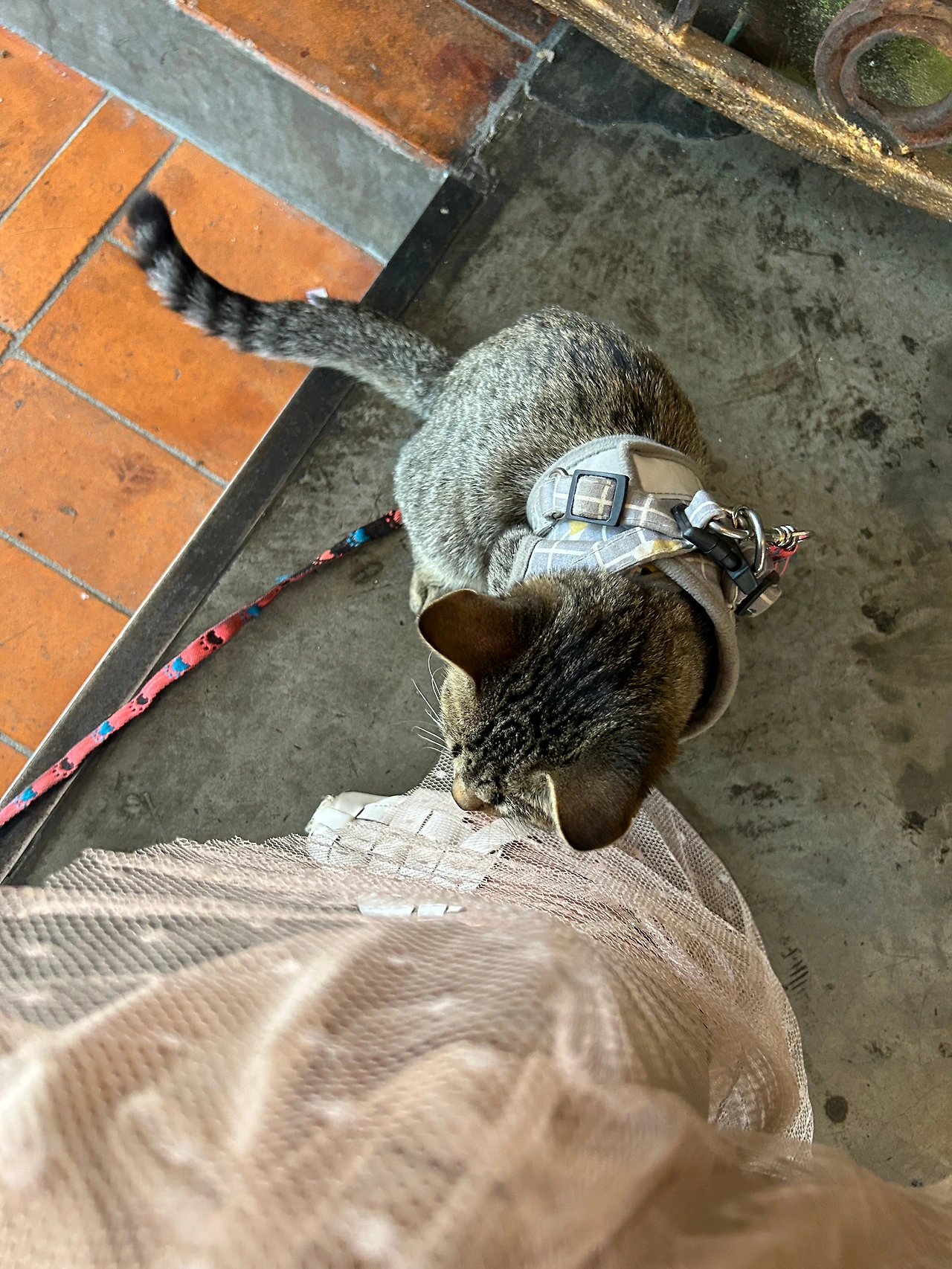 햇살 가득한 정원에서 따뜻하고 배부르게 식사를 마친 뒤. 화장실을 찾아 건물 안에 들어갔는데, 호텔에 딸린 식당인 관계로 실내좌석은 호텔손님들만 이용가능하도록 제약을 두어서 안이 텅 비었다. 덕분에 널찍한 실내는 전부 고양이들 차지! 아까 손님들에게 안겨 사랑받던 고양이가 나를 보더니 하네스를 찬 채로 쪼르르 달려온다. 손님이 데려온 고양이가 아니라 이 호텔에 사는 고양이인가 보다!