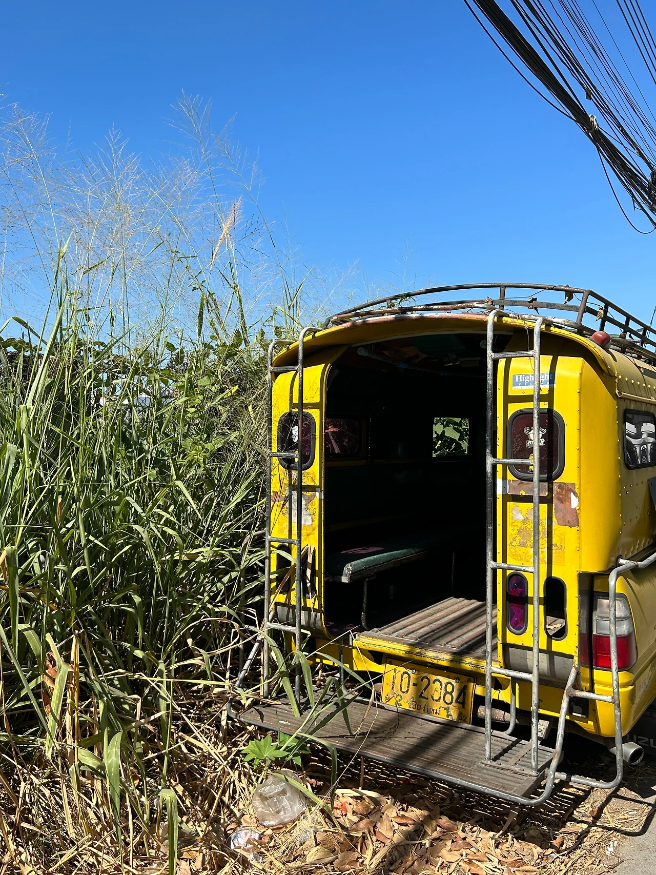 사람들이 수없이 지나다녀도 덩치 큰 개는 조금의 동요도 않고 사원 앞을 지키고. 사원 나무엔 주렁주렁 걸린 소원들이 한낮의 햇살에 지그시 반짝인다. 치앙마이를 지키는 용맹한 닭들의 목엔 사람들이 걸어준 꽃목걸이가 시들지 않는 빛깔을 뽐내고. 길가에 버려진 듯 세워진 노란 썽태우에 훌쩍 올라타면, 파란 하늘을 건너 다른 시공간에 뚝딱 떨어져버릴 것만 같다.