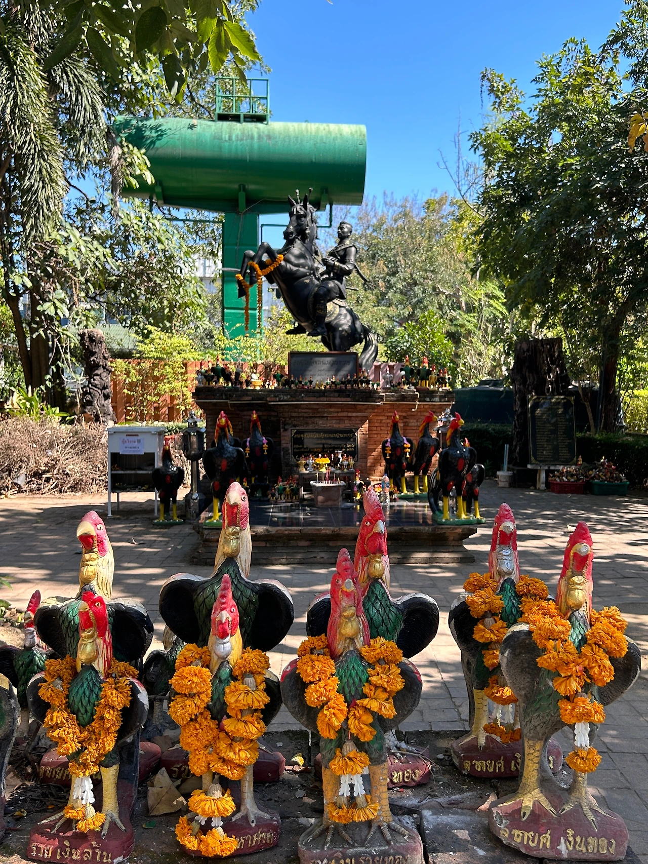 황금말이 지키는 사원의 담장을 따라 걷다 보니, 어느 집 담장의 가장 높은 꼭대기를 지키고 있는 수탉 한 마리가 눈에 들어온다. 그리고, 닭을 보자마자 절로 떠오르는 한 사람. 버마에 볼모로 붙잡혀있던 왕자시절, 버마왕자와의 투계-투견처럼 닭들을 훈련시켜 서로 싸우게 하는 것-에서 이기고도 모욕을 당한 뒤, 후에 고국으로 돌아와 태국을 동남아시아 최강국으로 만들었다는 나레수안 왕.