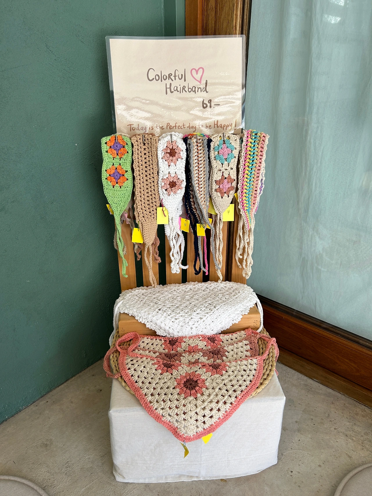 한국에 돌아와 사진을 보니, 역시 여행 중 쇼핑은 눈에 보였을 때 하는 게 진리. 평소에 머리띠를 애용하는 편이었는데, 치앙마이를 여행하면서 뜨개질한 헤어밴드를 사서 착용해보니 오래 착용해도 귀 뒤가 아프지 않고 생각보다 고정이 너무 잘 돼서 요즘은 완전 내 필수품이 되어버렸다. 한국에선 가격도 훨씬 비싸거니와, 이렇게 다양한 색상과 짜임의 헤어밴드는 구하기 힘든데. 왕창 사올 걸.