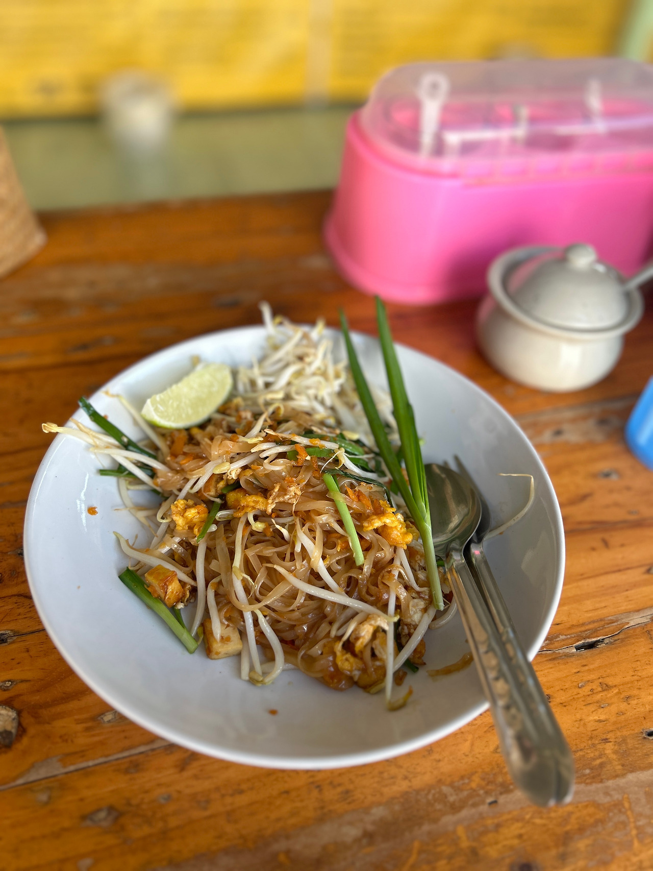 사원 옆 노부부가 운영하는 작은 식당에 왔다. 여러 가지 볶음국수와 수끼, 랏나 등을 파는데, 일단 팟타이를 주문했다.
