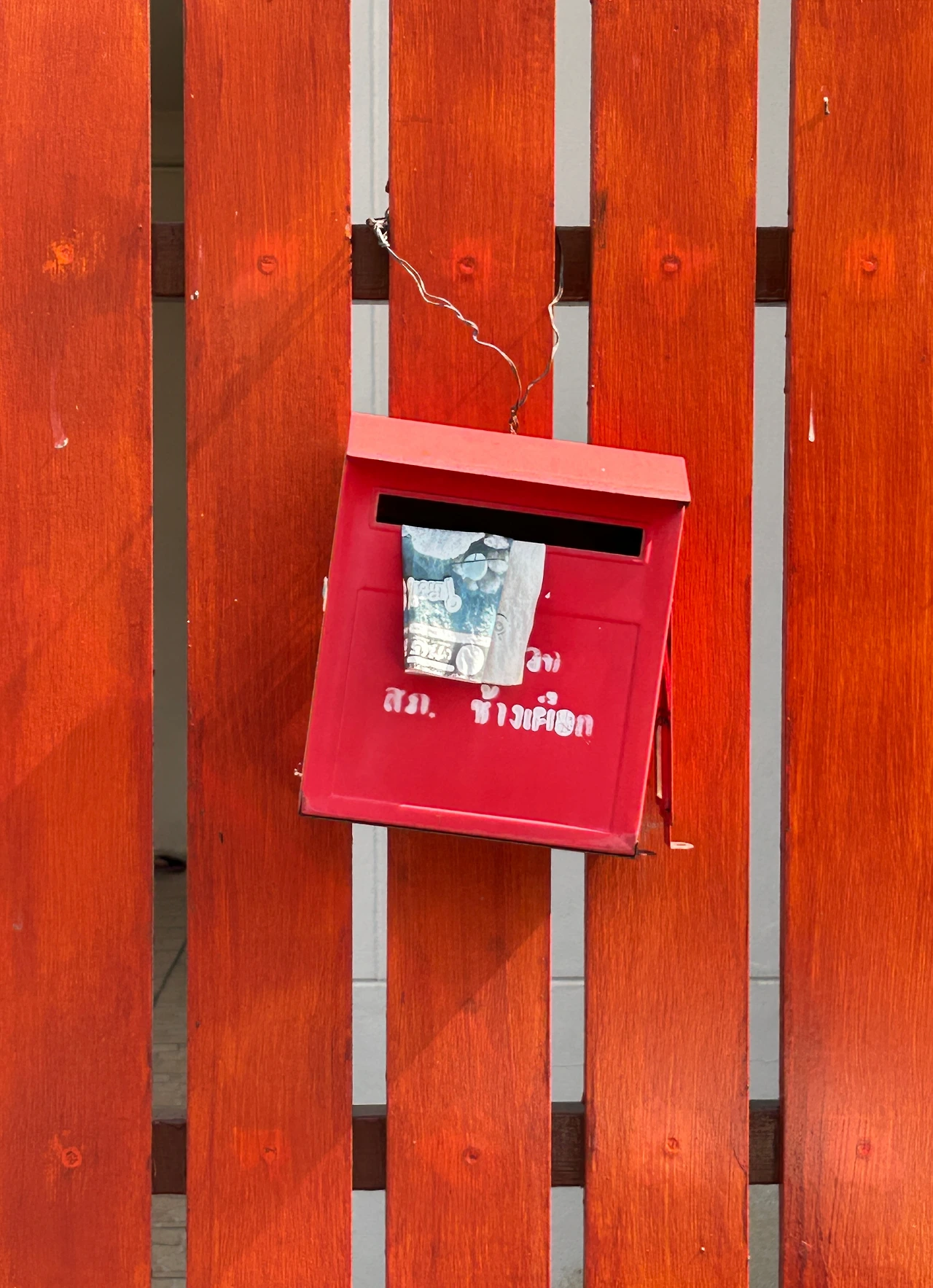 조금 더 걷다 보니 보이는 빨간 담벼락에 걸린 빨간 우체통.