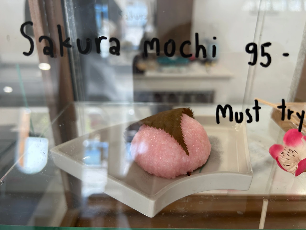 쇼케이스엔 고사리전분으로 만든 와라비모찌도 있고, 귀여운 마시멜로꼬치도 있고, 어여쁜 분홍빛으로 물들인 밥알로 빚은 떡을 시소(혹은 벚나무잎사귀)로 만든 장아찌로 감싼 사쿠라모찌도 있다. 예전에 처음 사쿠라모찌를 먹었을 땐 잎사귀는 그냥 장식이겠거니 생각해서 떼어버렸는데, 나중에 다시 제대로 먹어보니 속에 든 달콤한 팥앙금과 차진 밥알과 짭짤한 장아찌가 서로 아주 잘 어울렸다. 그러고 보니 미타라시당고와 사쿠라모찌 모두 ‘짠맛’을 가미한 떡들인데, 한국이나 일본이나 떡이 대부분 달아서 그런지, 이렇게 ‘단짠단짠’의 묘미가 있는 녀석들이 시간이 지나도 기억에 오래 남아있는 것 같다.