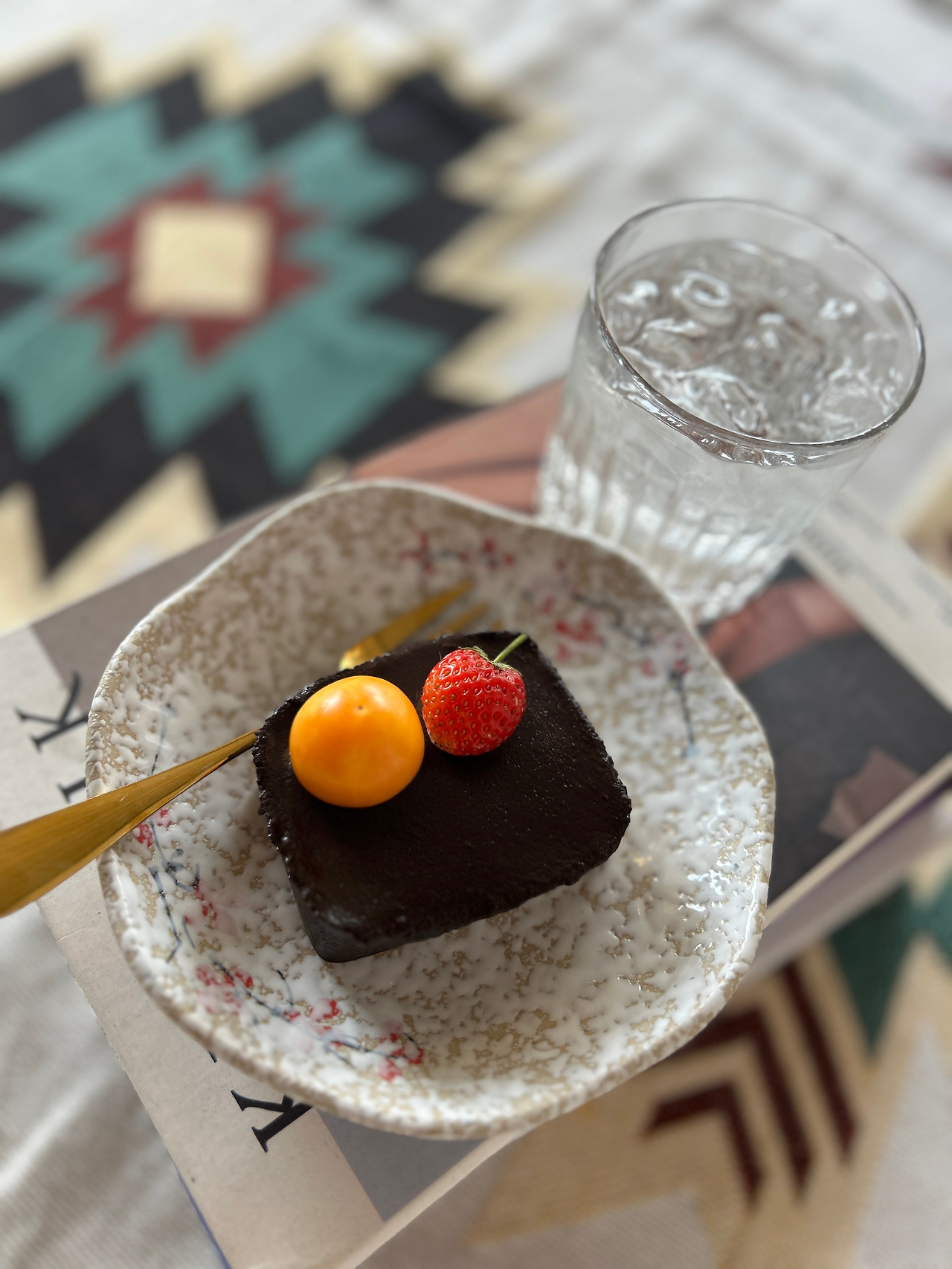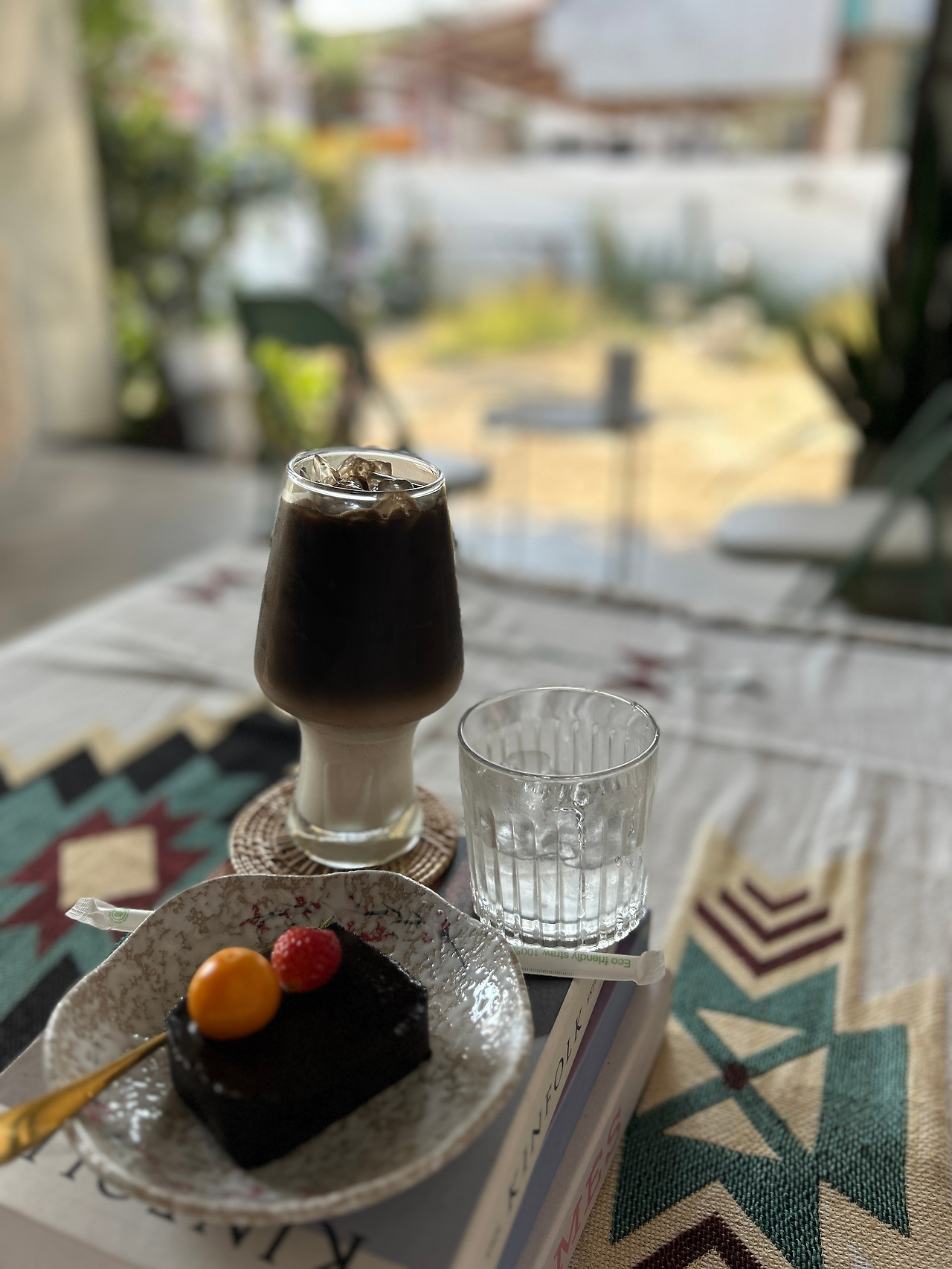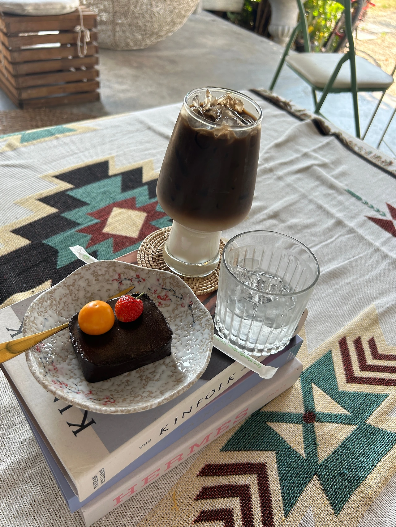 이렇게 멋진 카페에 손님이 나뿐이라니...!!! 어쩌면 단순히 오늘이 내게 멋진 카페를 독차지할 기회가 찾아와 준 행운의 날인지도 모른다. 비어있는 침대에 자리를 잡고, 밀크티 한 잔과 초콜릿케이크 한 조각 주문. 밀크티는, 진하게 우려진 색깔만 봐도 벌써 맛있다! 손님이라곤 나뿐이니 눈치 볼 것도 없겠다, 침대 위에 트레이를 올려놓고 갑작스레 사진기사로 변신해서 요리조리 앵글을 바꿔가며 평온한 한낮의 티타임을 소박하게 백 장 정도 사진으로 남겼다.
