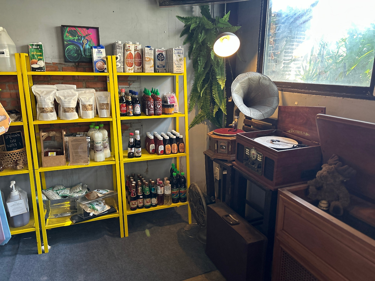 빠이와 치앙마이 대마초상점들의 경우 ‘Organic Cannabis유기농대마’라는 문구를 내세우거나, 인테리어부터 편안하고 친근한 분위기를 조성해 둔 경우가 많아서 –‘유기농’이라는 단어와 단풍잎 모양의 초록색 잎사귀 모두 겉보기엔 해로움이 전혀 없어 보이고, 오히려 뭔가 몸에 좋은 건가 싶은 착각을 불러일으키기 쉽기에- 잘 모르고 불쑥 들어가는 일이 있어선 안 되겠다. 하여간, 이 동네상점 역시, 실제로 안에서 어떤 제품군들을 취급하는지와는 상관없이, 외관은 참 아기자기하고 무해해 보인다.