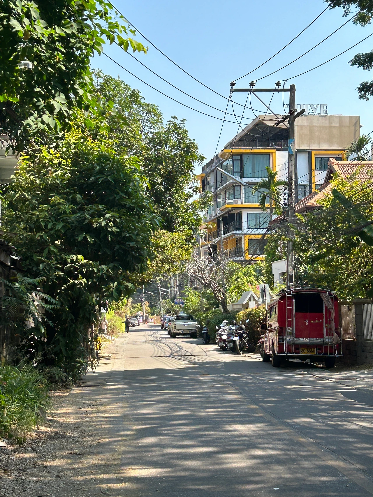 방콕은 서울에 버금가는 대도시지만, 치앙마이는 그로부터 멀리 떨어진 아담한 산간도시인지라 ‘동남아’ 하면 흔히 떠오르는 택시와 오토바이가 꽉꽉 메운 거리도, 그로 인한 소음이나 공해도 없다. 아침을 맞아 문밖으로 나서면, 맞이하는 것은 다정한 여름의 햇살. 그 속에서 마음껏 자신의 색을 뽐내는 풍경들을 마주하며 걸어가면, 절로 마음이 편안해진다.