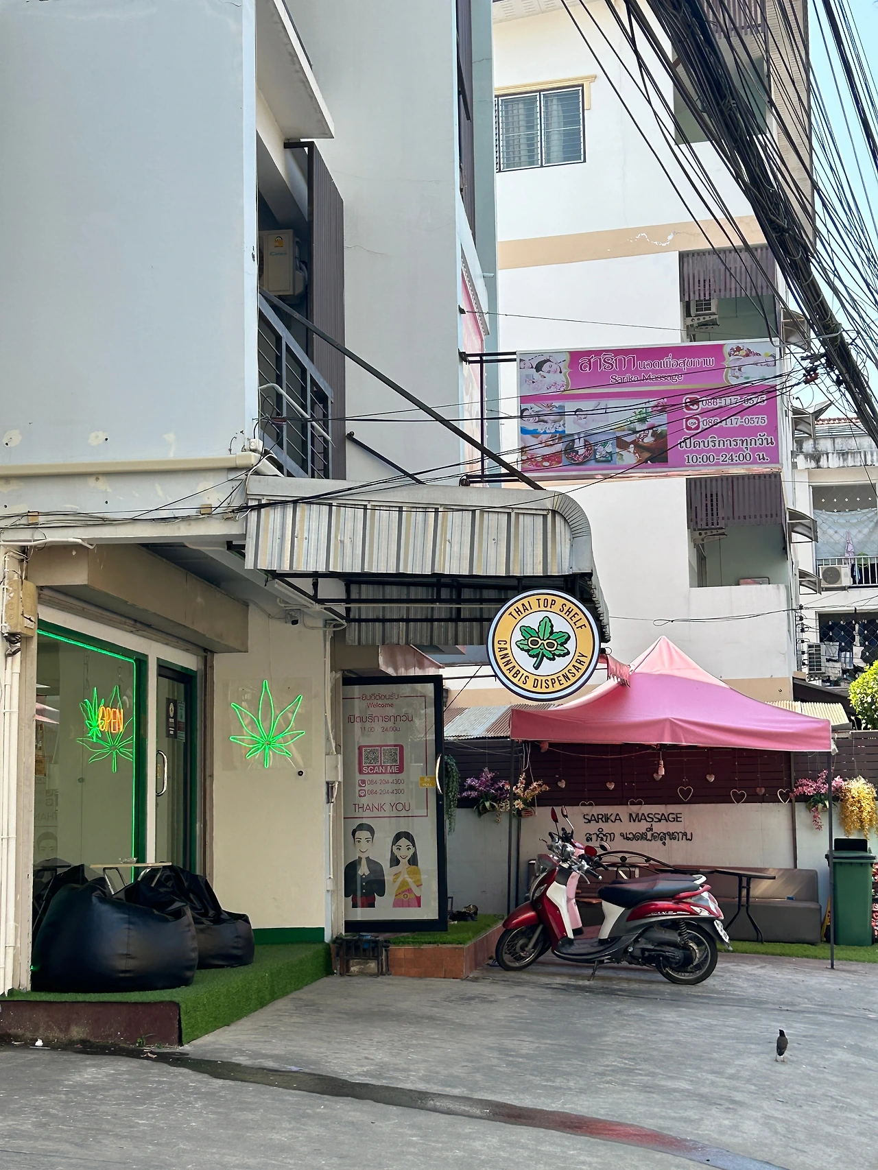 조금 더 걷다 보니 아침부터 발랄하게 형광색 빛을 밝힌 캐너비하우스가 눈에 들어온다. ‘대마초’를 판매하는 상점들이 처음 눈에 들어온 건 빠이를 여행하는 도중이었는데, 한 번 인식하고 나니 치앙마이에서도 대마초를 상징하는 단풍잎 모양의 푸르른 네온사인이나 ‘CANNABIS’라고 명확하게 표기한 간판들이 곳곳에서 제법 자주 눈에 들어온다.