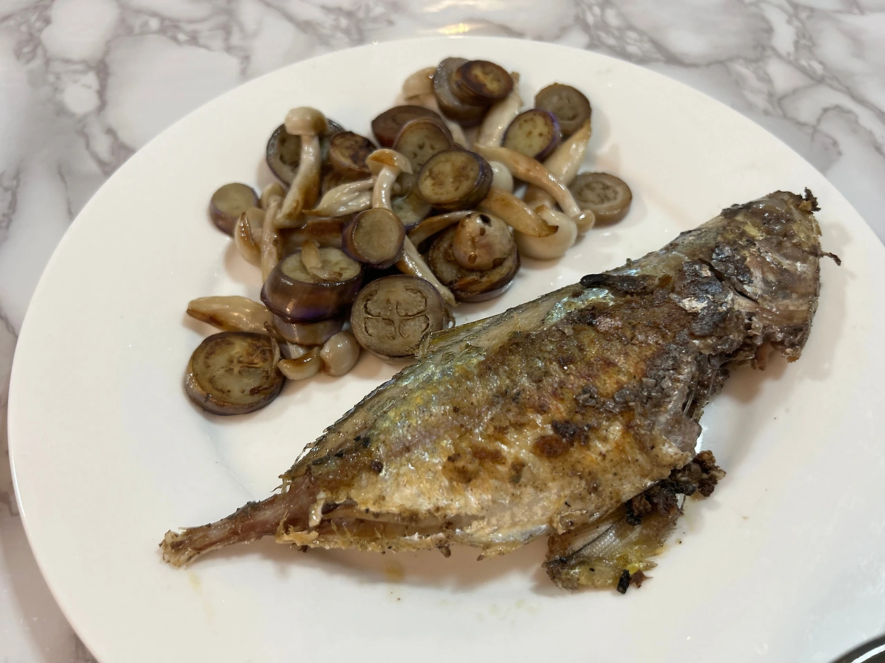 완성된 저녁식사는 오늘도 영 푸드크리에이터는 못 될 모양새지만, 내가 좋아하는 재료만으로 내가 좋아하는 방식으로 요리했으니, 맛있게 먹었다. 등 푸른 생선 특유의 기름진 맛이 적고 담백한 태국고등어는 크기도 작아서 혼자서 깔끔하게 한 끼 먹기에 딱 좋다.