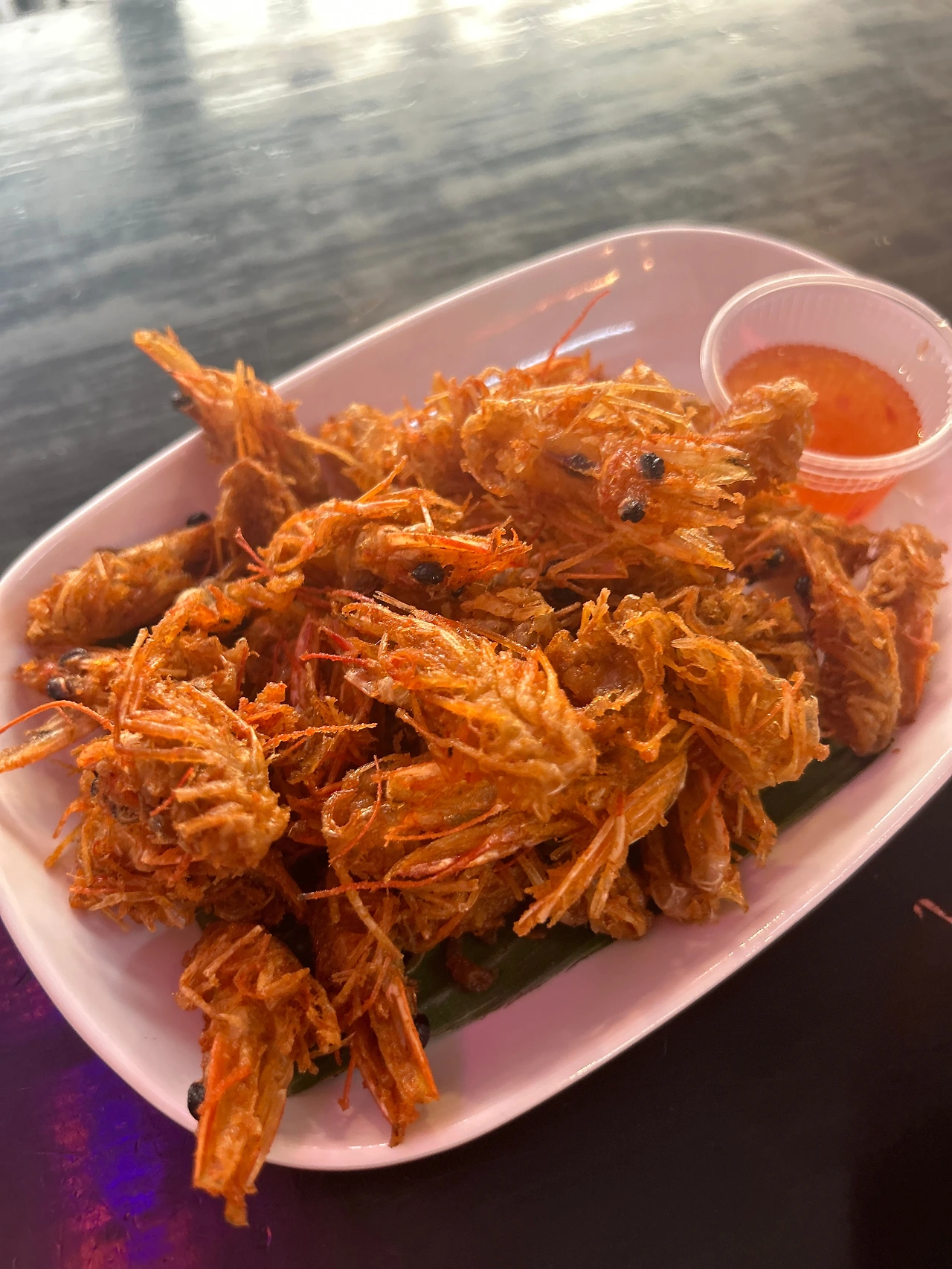 뒤이어 나온 건, 창펀을 먹으러 갔던 홍콩식당에서 입맛만 다셨던 새우머리튀김! 양도 많고, 아주 바삭바삭하게 튀겨져 나왔는데, 맥주가 없으니 아쉽다.