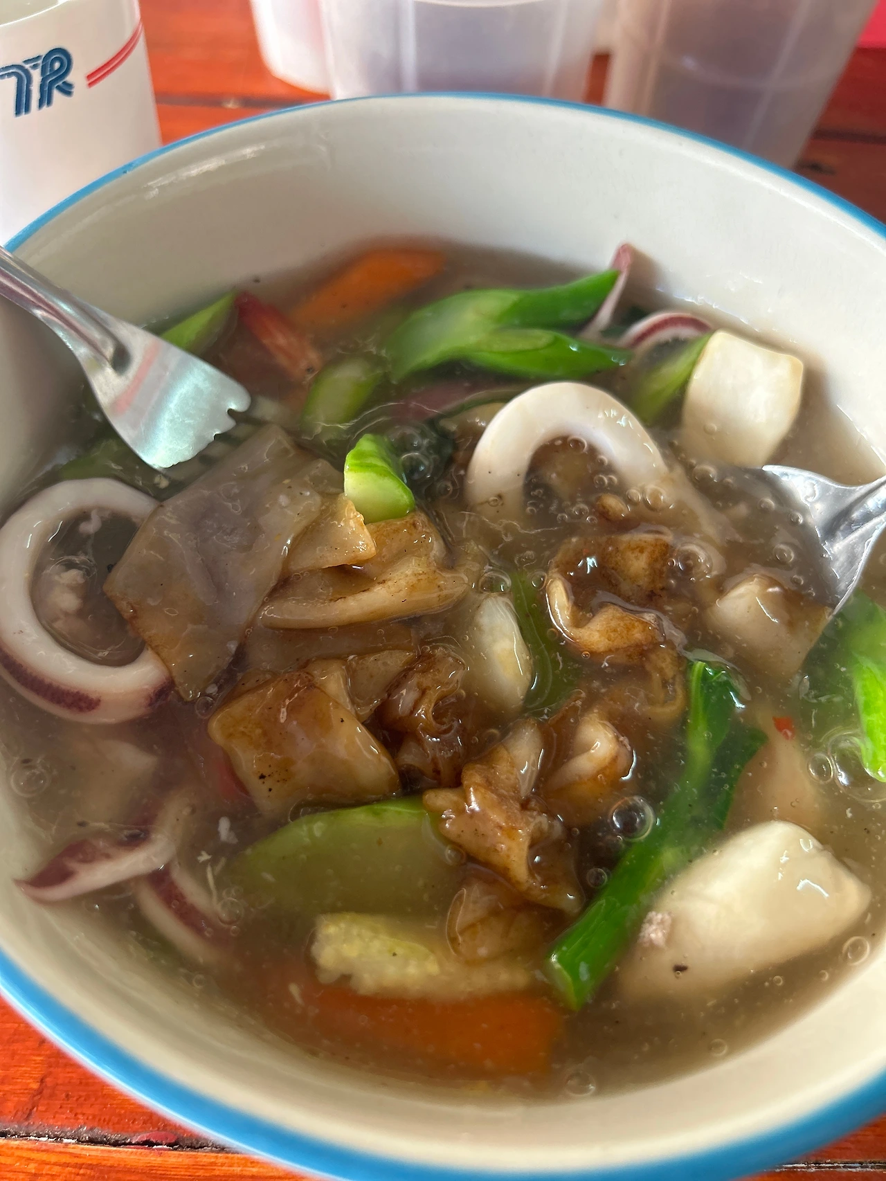 오늘은 이번 치앙마이여행에서 새롭게 ‘내 영혼의 태국음식’으로 등극한 ‘랏나’를 주문했다. 넓적한 쌀국수를 해산물과 함께 겉면이 갈색이 되도록 화끈하게 볶아낸 후에 전분을 섞은 걸쭉한 국물을 부어서 주는 요리인데, 중국요리 중에 ‘해물누룽지’와 맛이 비슷하다.