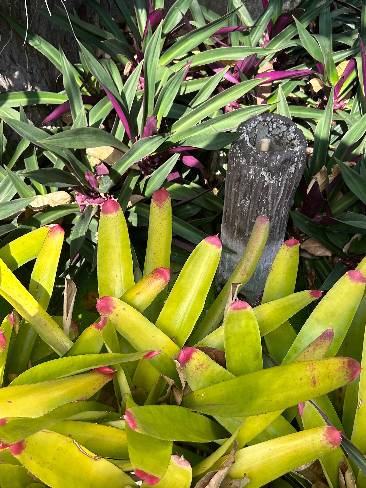 뿌듯한 걸음으로 식당을 나오자마자 마주한 건, 끄트머리에 한낮의 태양으로 연지곤지를 찍은 듯한 푸르른 잎사귀들. 식물들이 화려한 색을 지닌 건 천적들로부터 살아남기 위한 병법이라는데, 이 식물은 무슨 연유로 잎사귀 끝을 붉게 물들였을까?