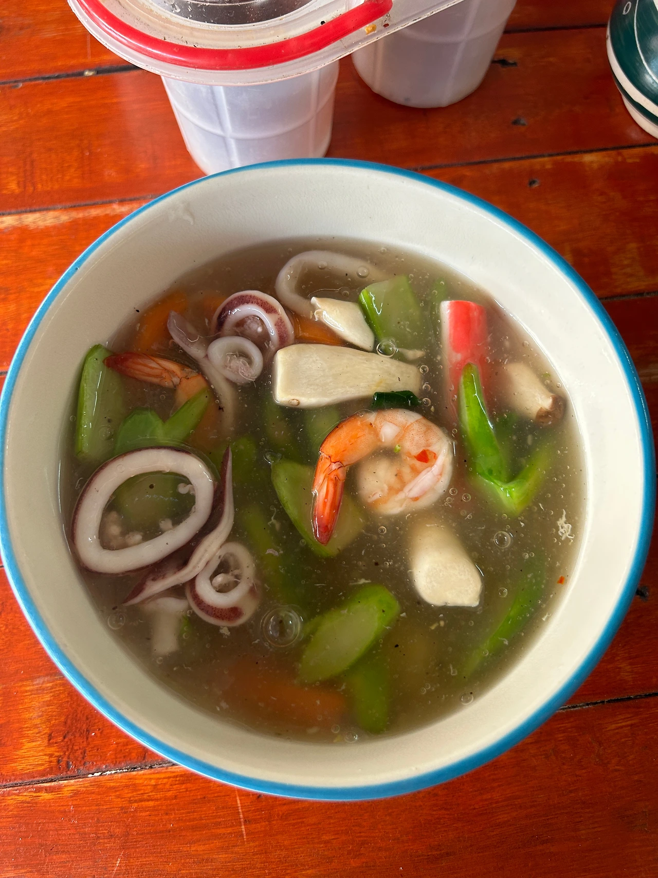 푸근한 인상의 사장님이 오픈키친에서 요리해주는 단골식당에 왔다. 태국은 날씨 특성상 주방이 뻥 뚫려있는 곳들이 많아서 요리하는 모습을 구경하길 좋아하는 나 같은 사람들에겐 참 재미있는 여행지다.