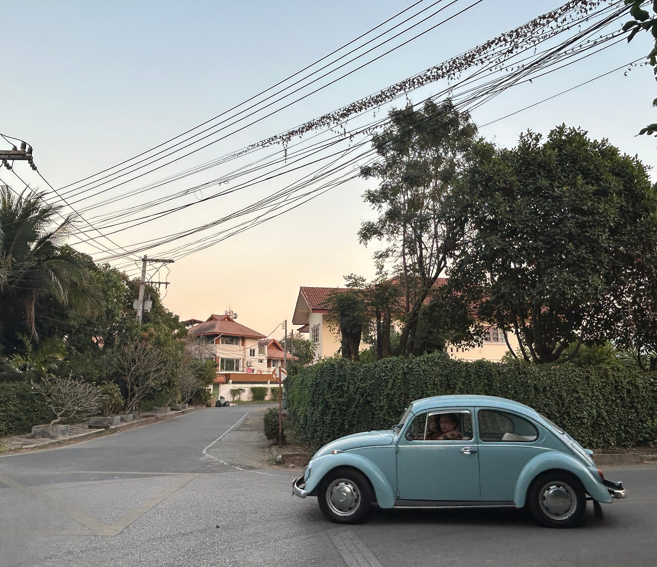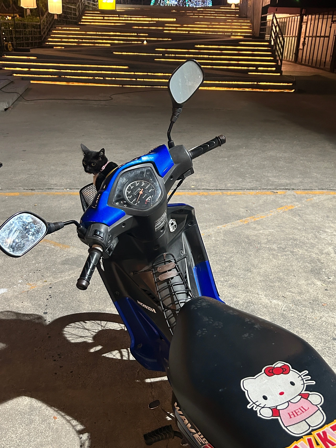 그제야 눈에 들어온 키티 스티커. ‘아하, 이거 네 집사가 타는 오토바이구나!’ 그걸 이제야 알았냐는 듯 빤히 날 쳐다보더니, 녀석은 이내 바구니 속에서 편히 몸을 말곤 그루밍을 시작했다. 보아 하니, 바구니에 한두 번 타본 폼이 아니다. 모르긴 해도 요 녀석, 치앙마이의 다른 고양이들처럼 매일 아침저녁 집사와 함께 출퇴근을 하나 보다. 맞춤처럼 녀석의 몸에 딱 맞는 요 바구니를 타고서!