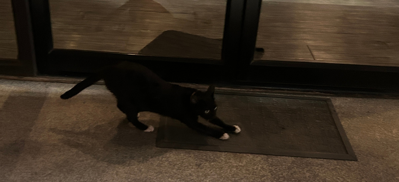 어느덧 흘러가 닿은 밤의 한가운데. 콧노래를 부르며 집으로 돌아가는 길에 고양이를 만났다. 까만 망토를 뒤집어쓰고 네 발엔 하얀 양말을 갖춰 신은 오늘밤의 안내자. 두 발을 뻗어 기지개를 한 번 쭉 켜고는 따라오라는 듯 앞장을 선다.