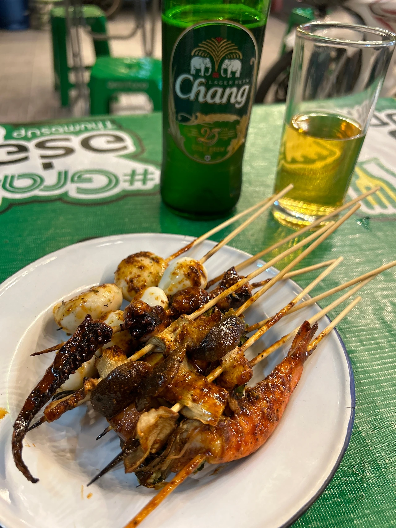 겉모습만 보고 담은 꼬치들에서 과연 무슨 맛이 날까 기대하며 하나하나 고심해서 집어 들었던 첫날과 달리, 모두 ‘아는 맛’들만 담겨있는 접시를 마주한 오늘은 주저 없이 잔을 들며 접시를 비워나간다. 보글보글 잔 속에 피어난 하얀 거품으로 배를 지어 까만 밤 속에 동동 띄우고서, 아는 맛들로 노를 저으며 거침없이 앞으로 나아간다. 밤은 사방이 온통 칠흑의 장막으로 가려져있지만, 든든한 아는 맛에 약간의 알코올을 알딸딸하게 더해주면, 그 어디로든 성큼성큼 발을 내딛을 수 있을 것만 같다.