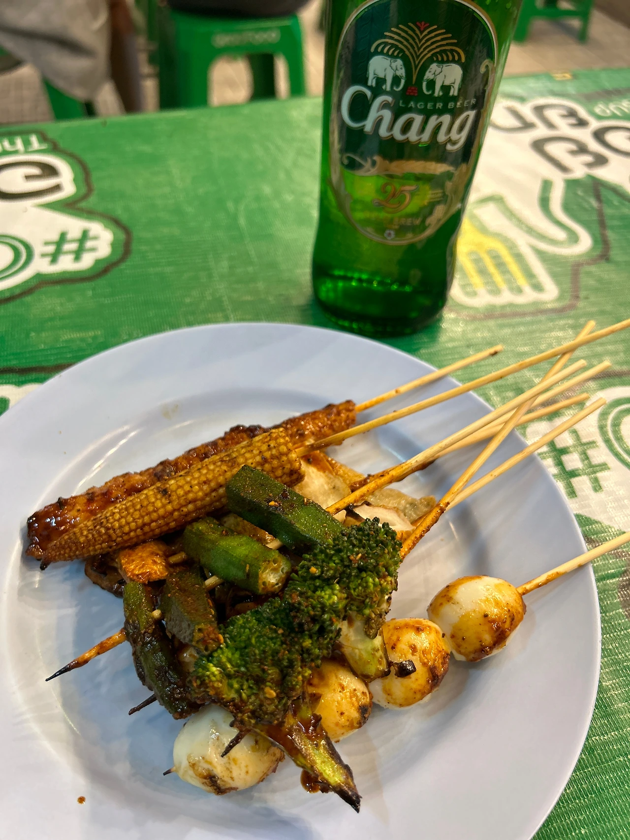 두 번째 접시에도 이미 아는 맛들을 한가득 담았다. 서걱서걱한 베이비옥수수도, 겉은 오독오독하고 속은 끈끈한 오크라도, 모두 조금 독특한 식감을 가진 야채들인데, 불길이 닿으면 마법처럼 그 매력이 절정에 이른다.