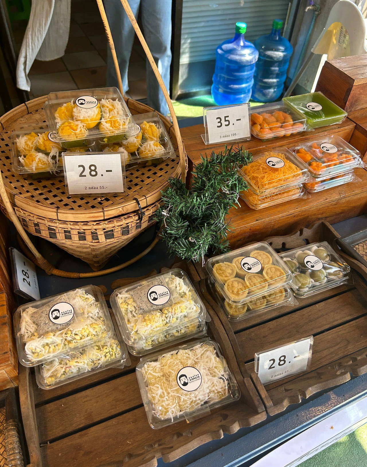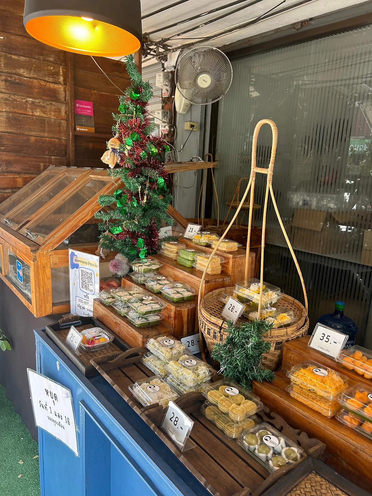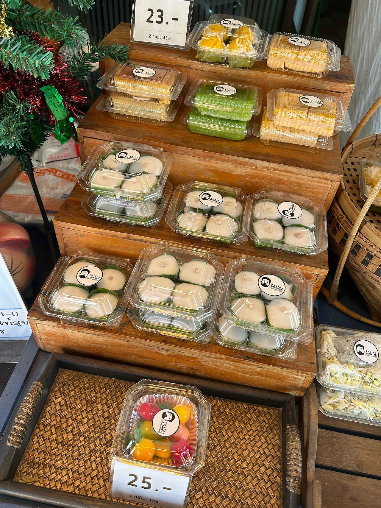 태국디저트들은 한국의 떡과 맛이나 식감이 비슷한 경우가 많은데, 대부분 쌀과 녹두, 타피오카전분, 토란과 비슷한 식감의 타로, 코코넛밀크, 초록빛깔을 내는 판단잎 등이 재료인 것 같다.